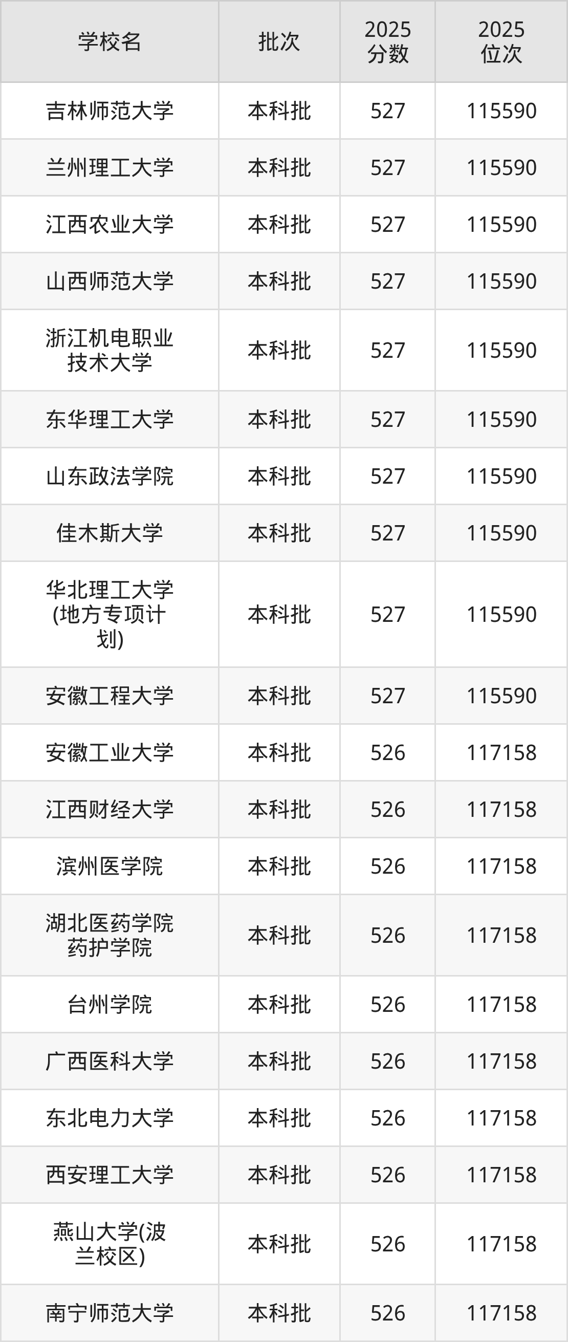 这些都是2026年高考物理类115591名~117158名考生可以报考的大学,更多学校名单如下表所示: