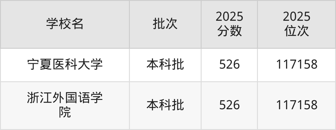2025年河北高考物理类526分(115591名~117158名)能上的大学有宁夏医科大学、安徽工业大学、江西财经大学、浙江外国语学院等。