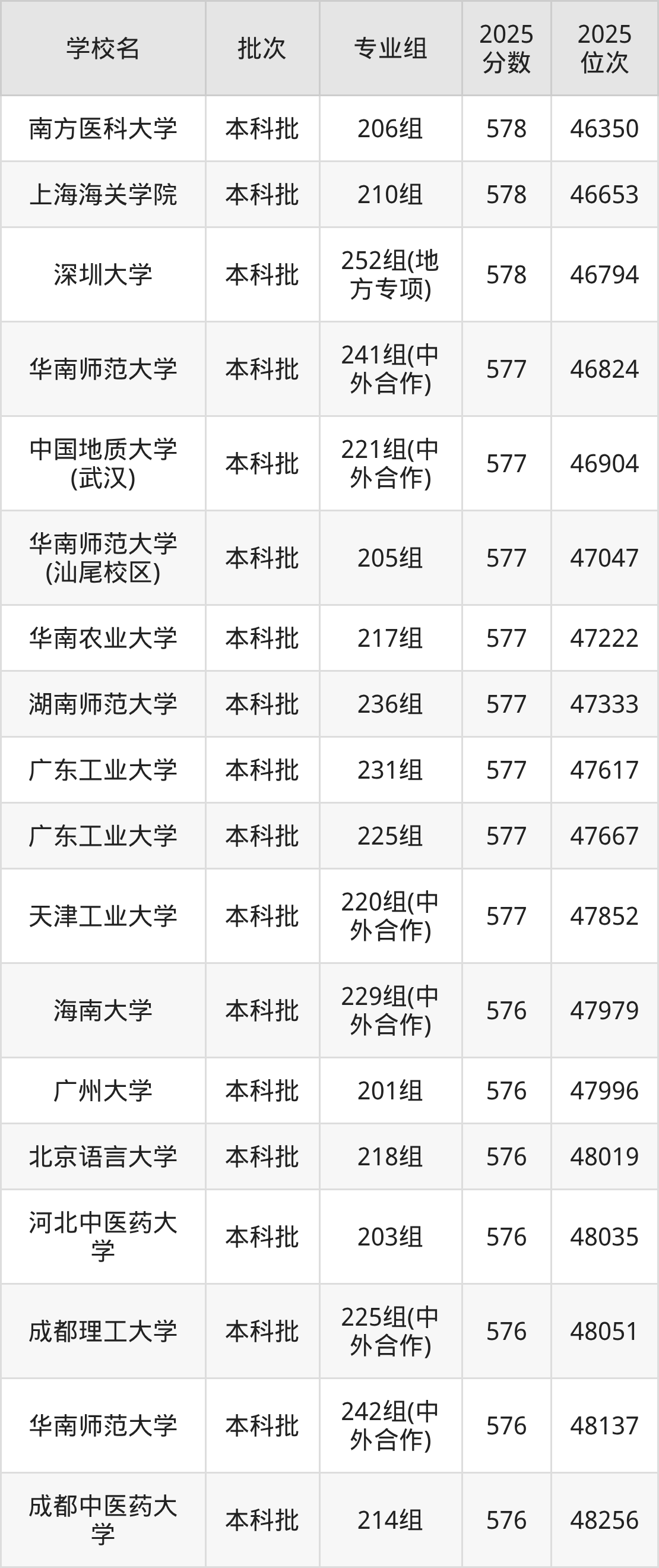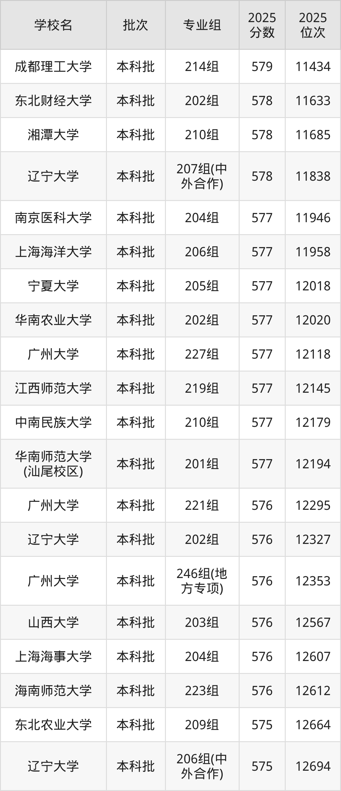 二、广东577分位次排名能上的大学