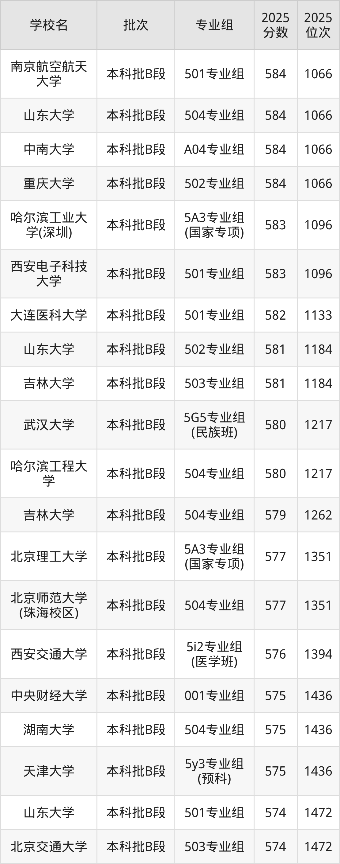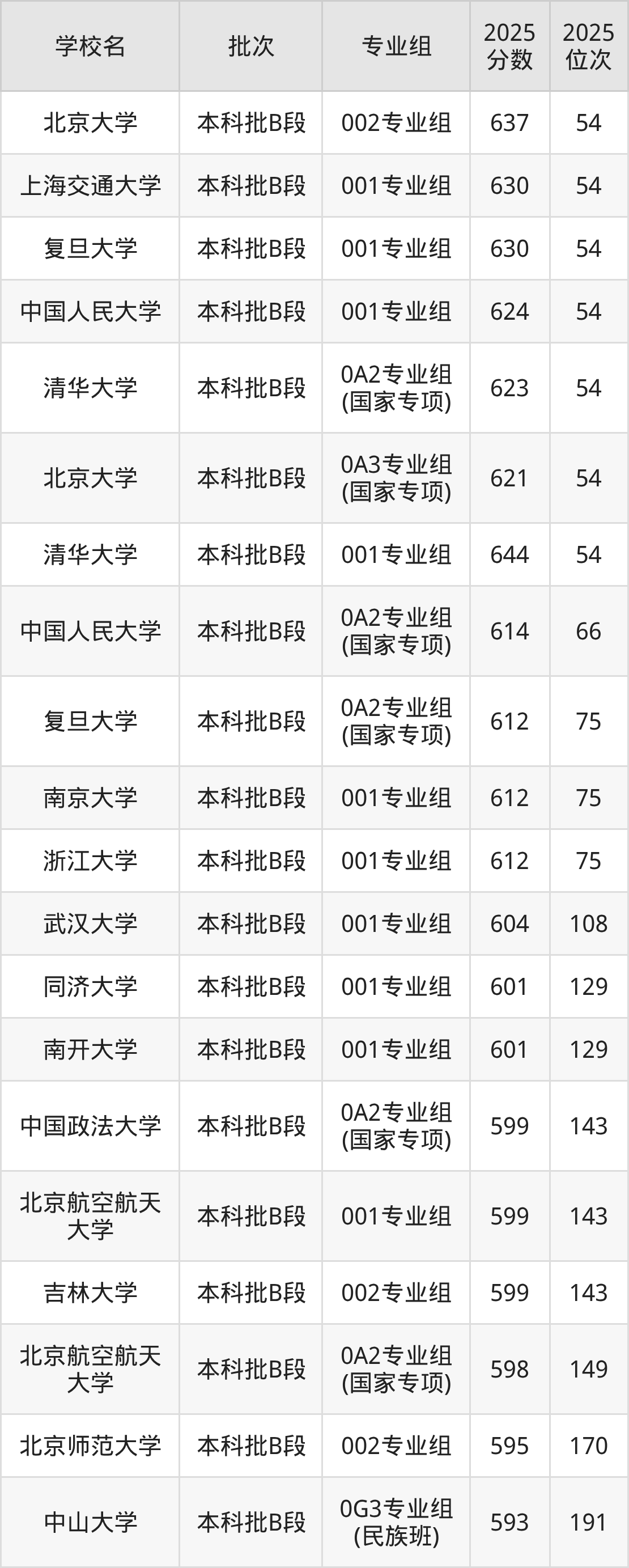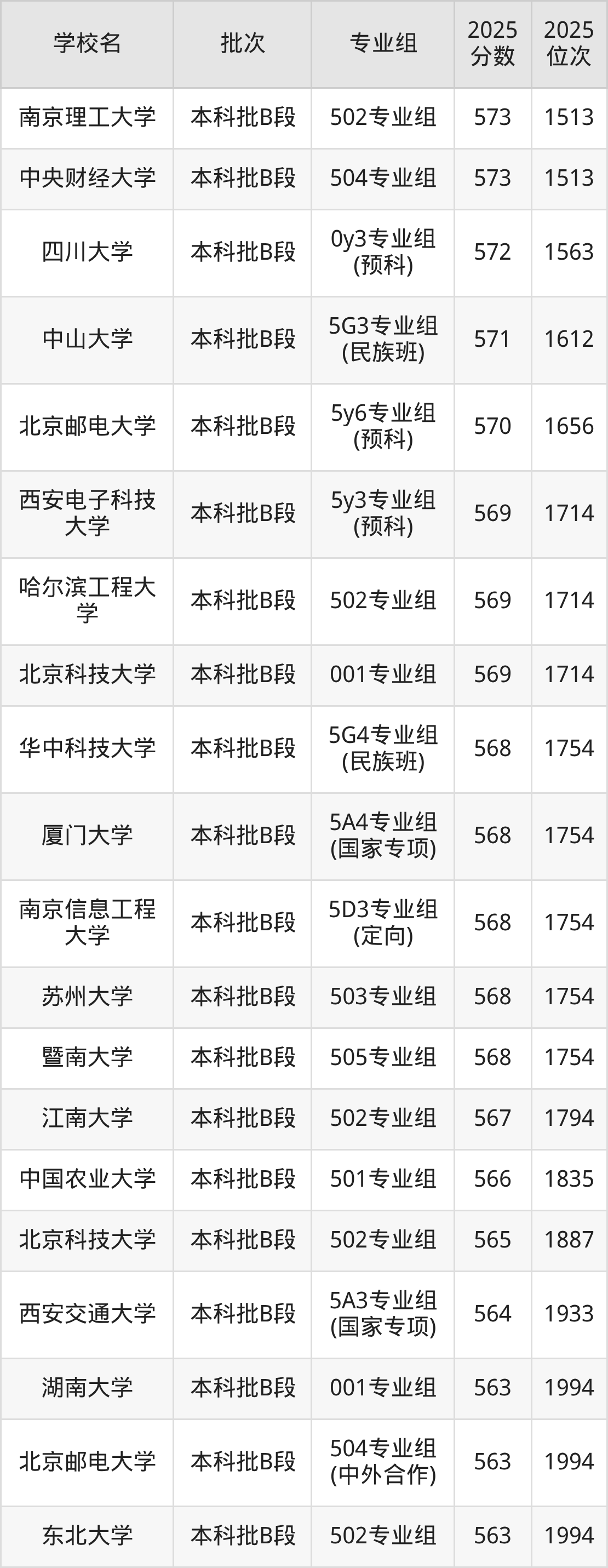 另外录取位次低于该区间(较稳妥)的有中山大学5G3专业组(民族班)(1612名)、北京邮电大学5y6专业组(预科)(1656名)等;录取位次高于该区间(可冲)的有中央财经大学504专业组(1513名)、南京理工大学502专业组(1513名)等。
