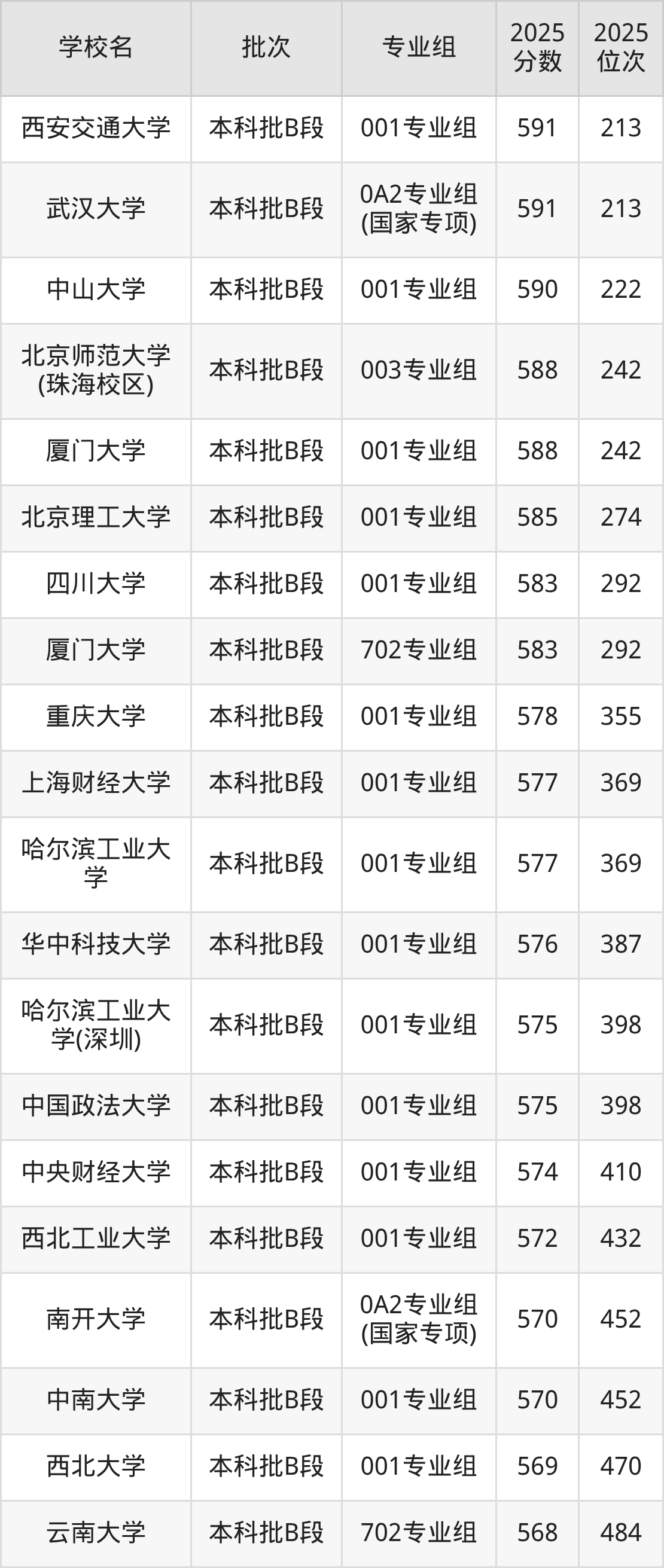 另外录取位次低于该区间(较稳妥)的有中南大学001专业组(452名)、南开大学0A2专业组(国家专项)(452名)等;录取位次高于该区间(可冲)的有中央财经大学001专业组(410名)、中国政法大学001专业组(398名)等。