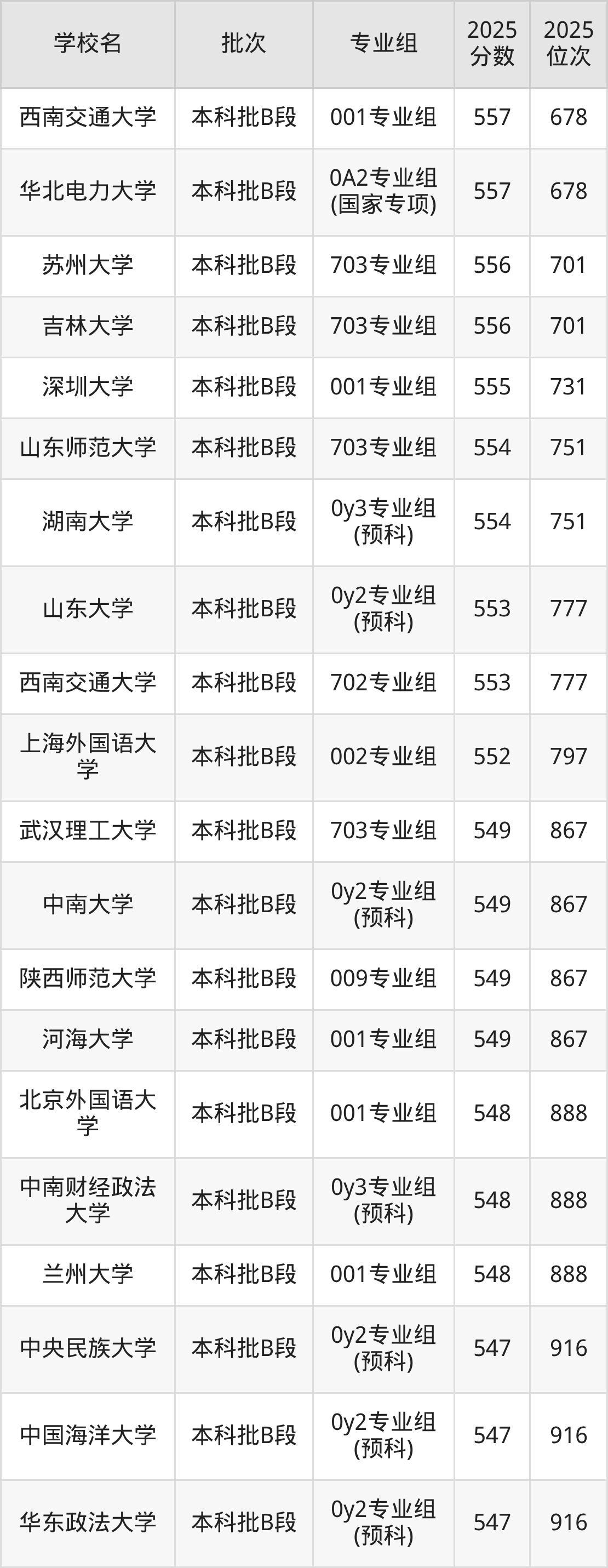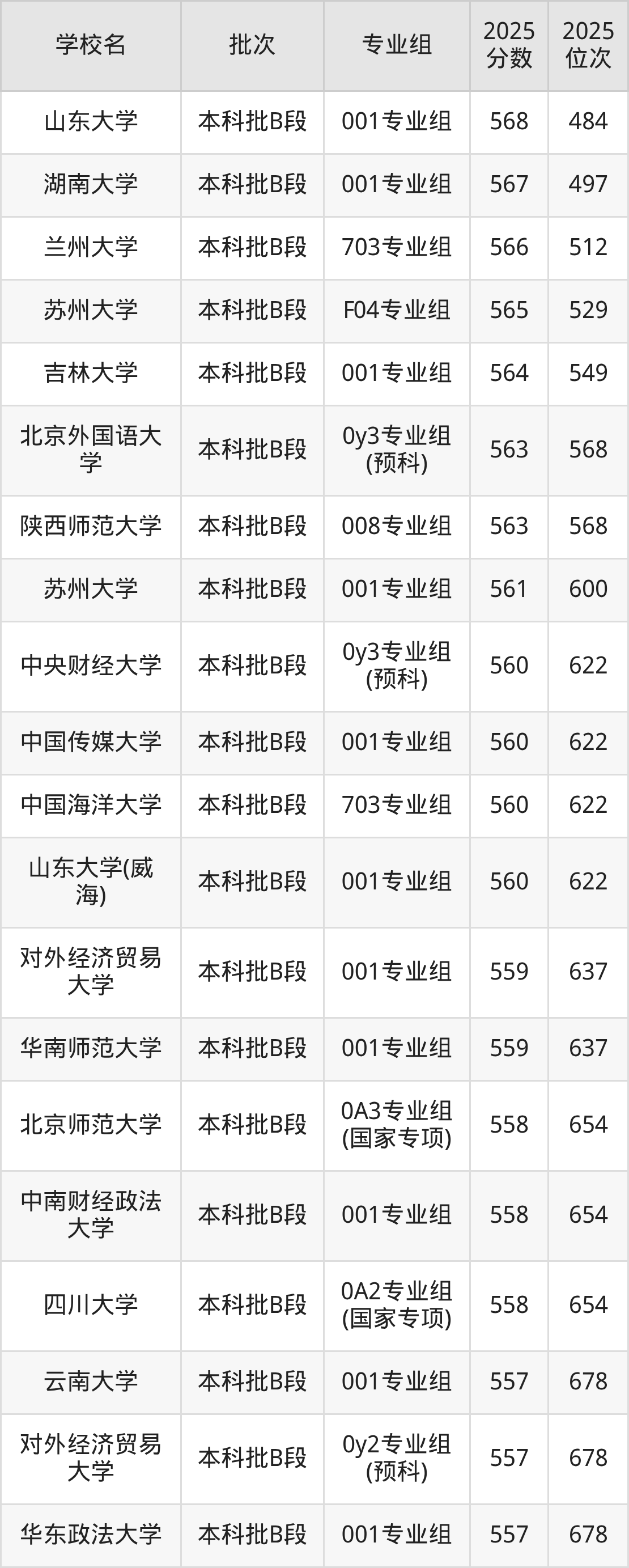 这些都是2026年高考历史类417名~432名考生可以报考的大学,更多学校名单如下表所示: