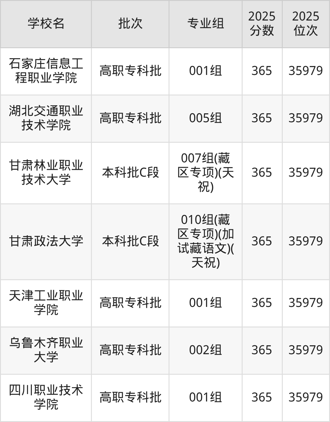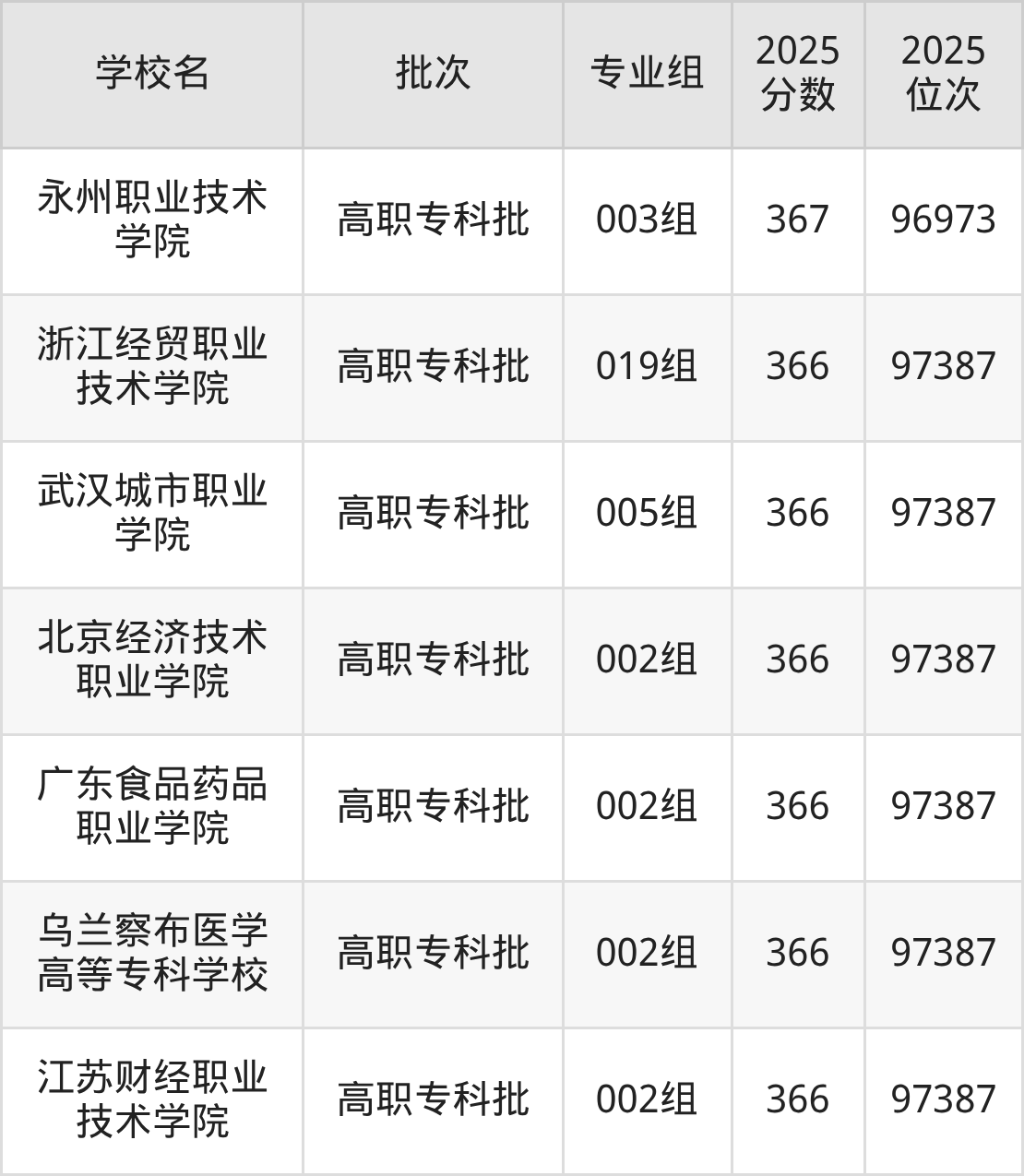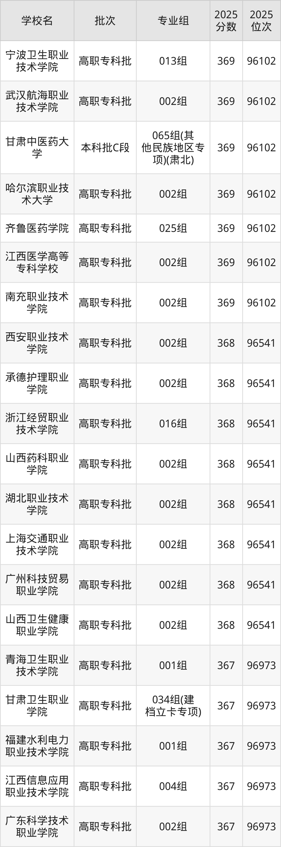 2025年甘肃高考物理类367分(96542名~96973名)能上的大学有福建水利电力职业技术学院001组、江西信息应用职业技术学院004组、永州职业技术学院003组、广东科学技术职业学院002组等。