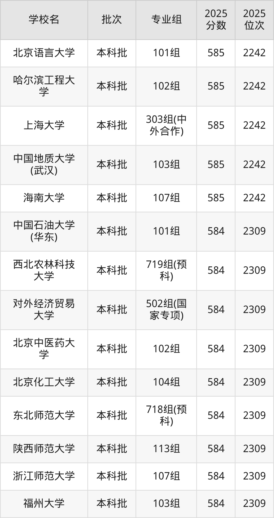 由于高考录取分数线历年波动较大,因此本文以该分数对应的位次排名为大家整理能上的大学名单。