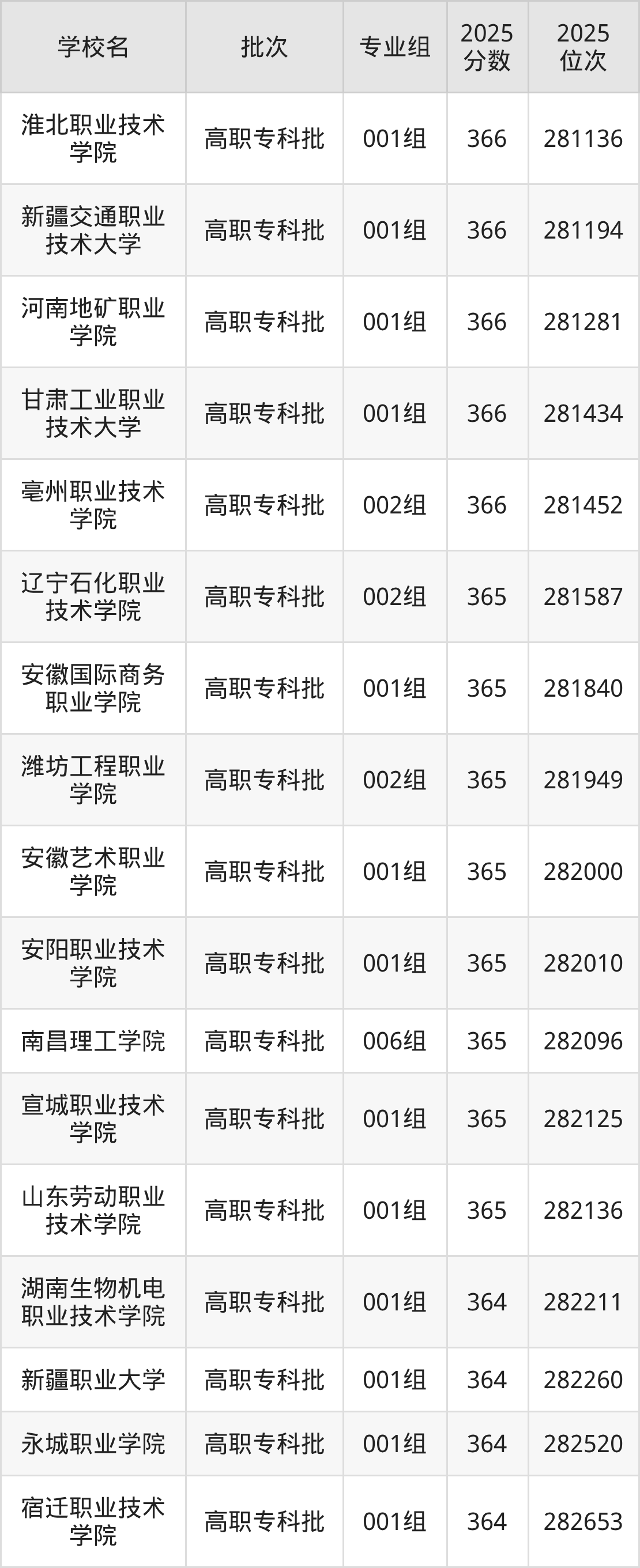 2025年安徽高考物理类365分(281578名~282200名)能上的大学有安阳职业技术学院001组、辽宁石化职业技术学院002组、南昌理工学院006组、山东劳动职业技术学院001组等。