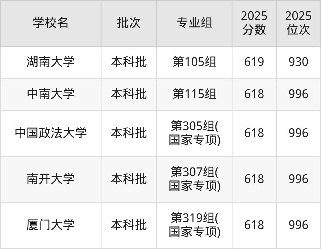 这些都是2026年高考历史类501名~537名考生可以报考的大学,更多学校名单如下表所示: