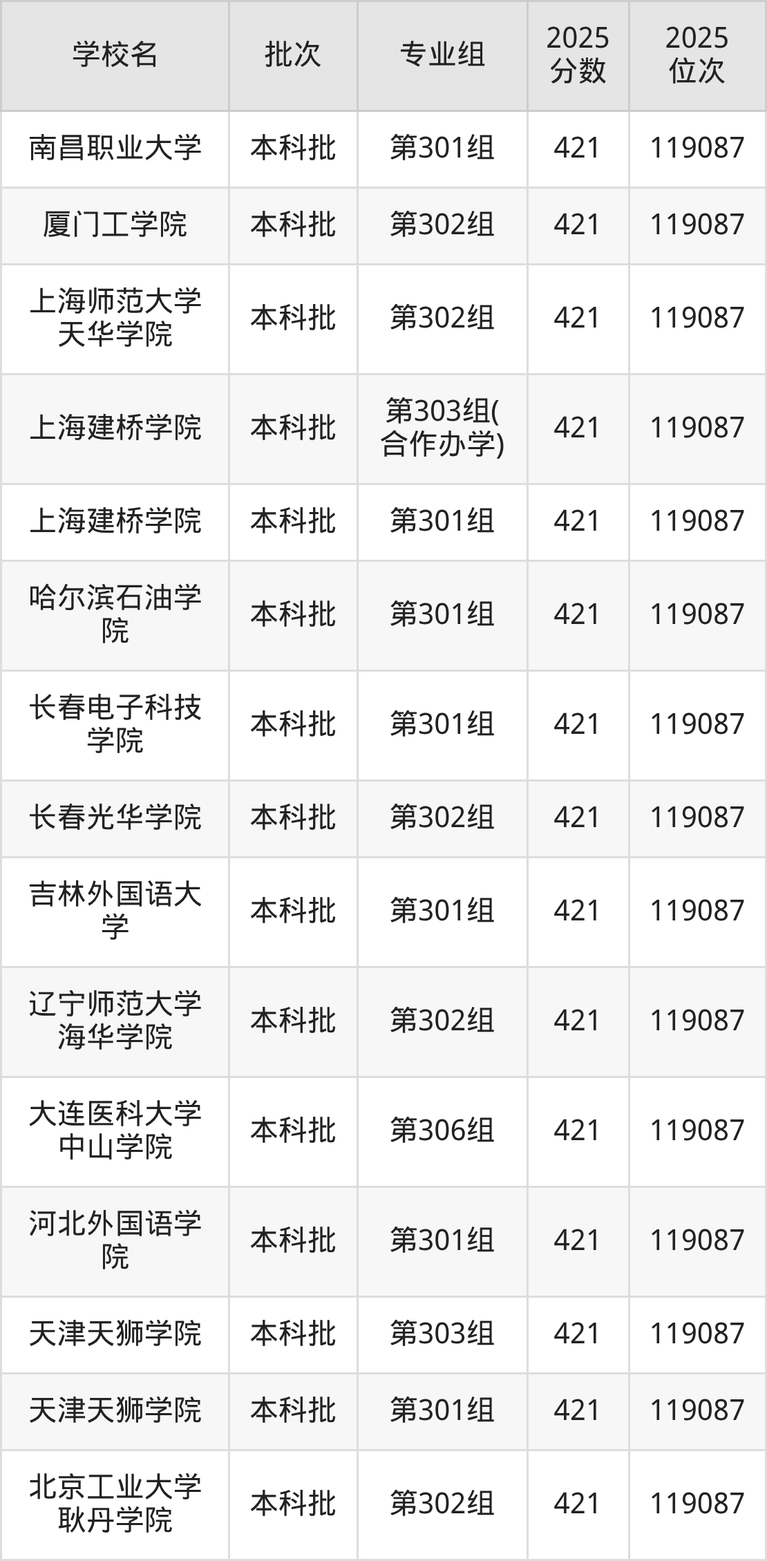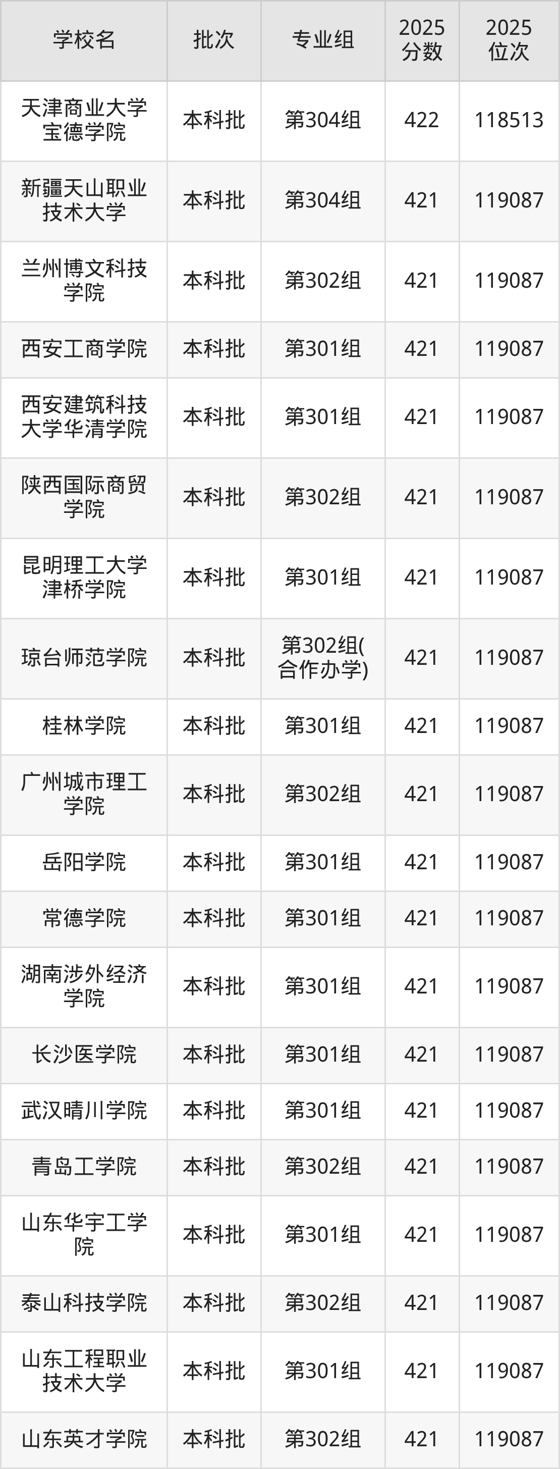2025年山西高考物理类421分(118514名~119087名)能上的大学有北京工业大学耿丹学院第302组、天津天狮学院第301组、天津天狮学院第303组、河北外国语学院第301组等。
