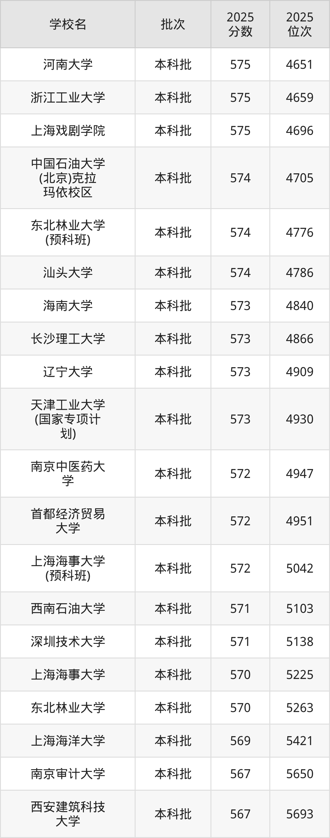 这些都是2026年高考历史类5083名~5205名考生可以报考的大学,更多学校名单如下表所示: