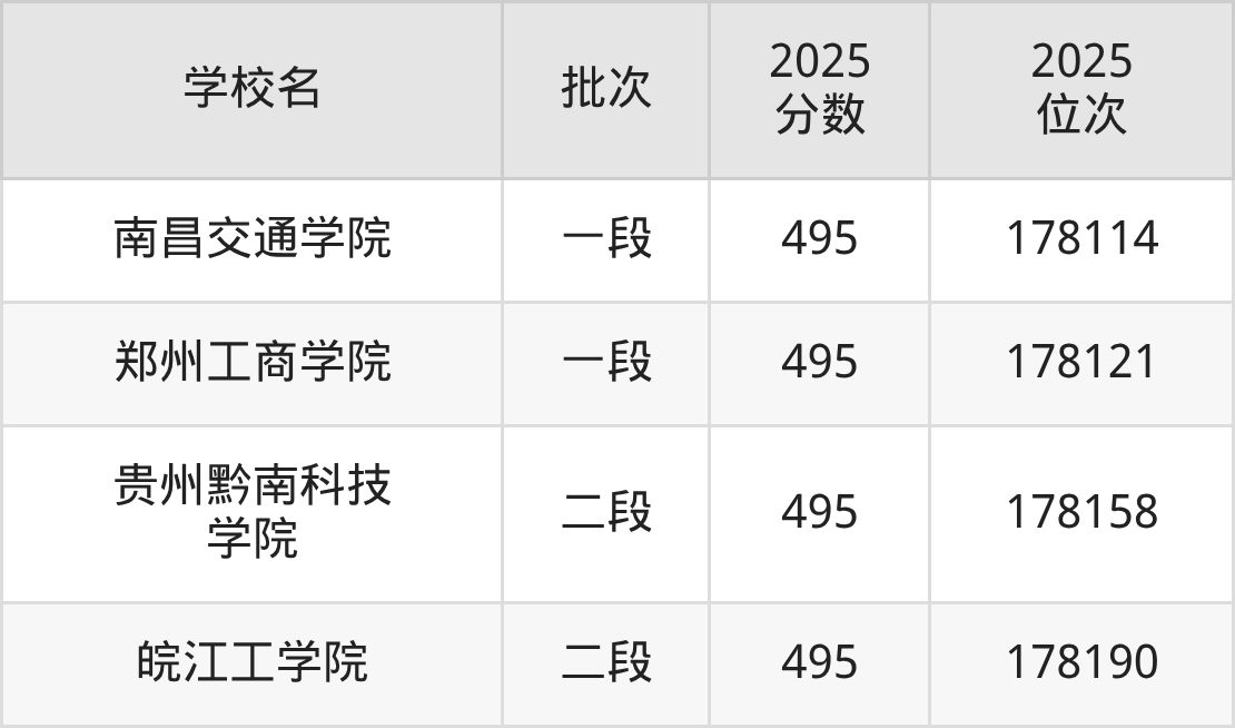 这些都是2026年高考176564名~177704名考生可以报考的大学,更多学校名单如下表所示: