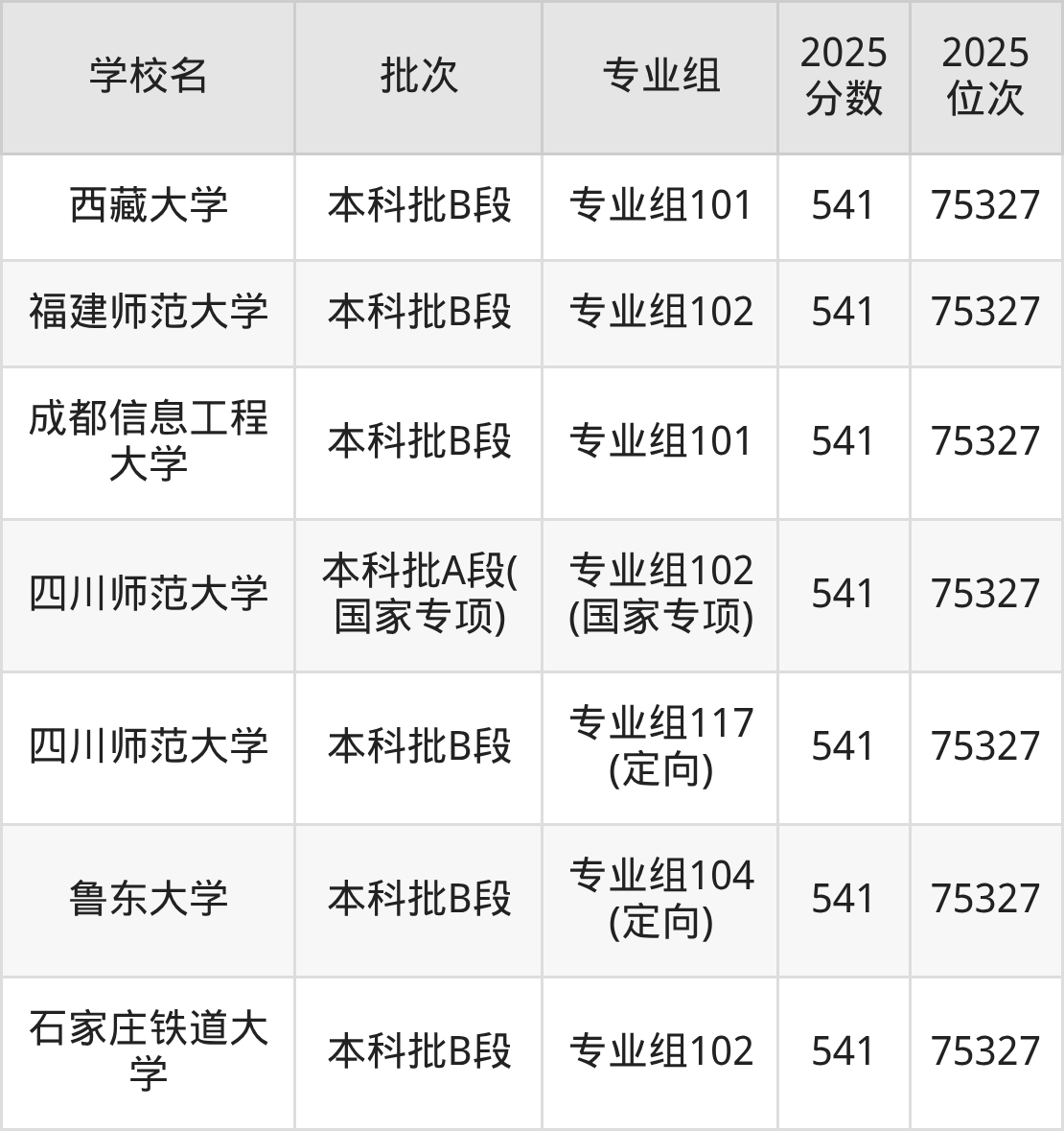 2025年四川高考物理类541分排名位次区间是:74216名~75327名。