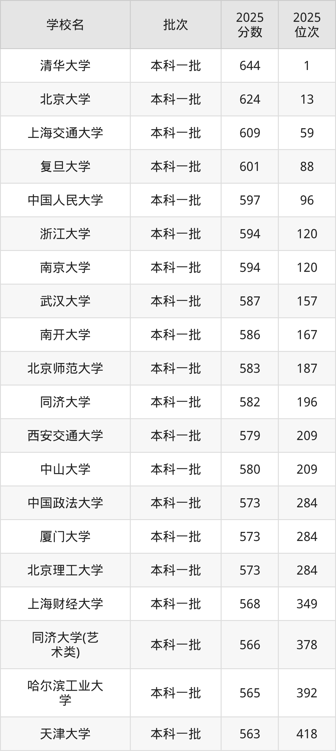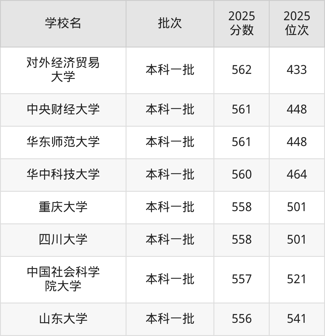 这些都是2026年高考文科49名~52名考生可以报考的大学,更多学校名单如下表所示: