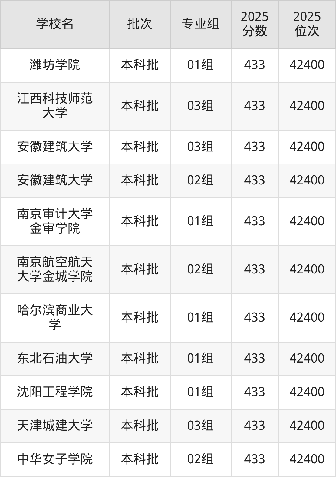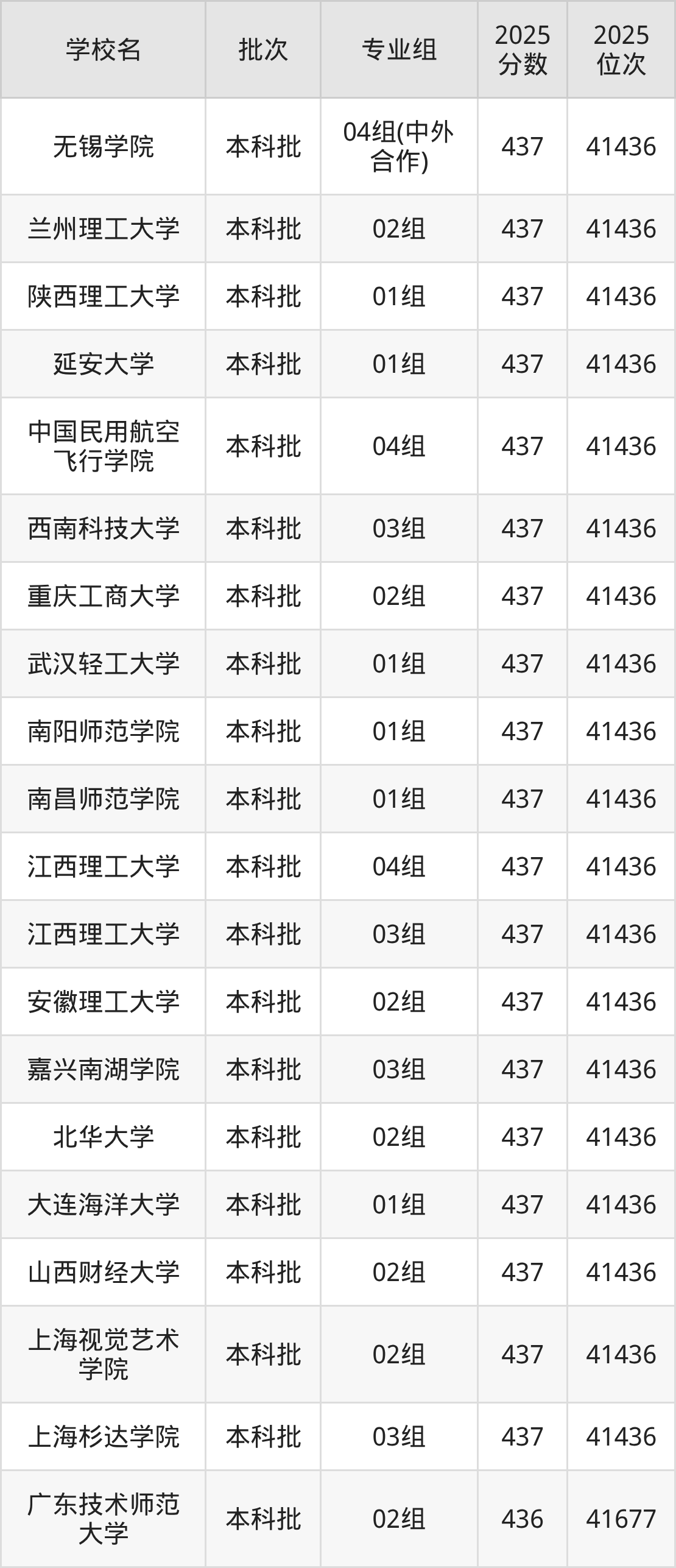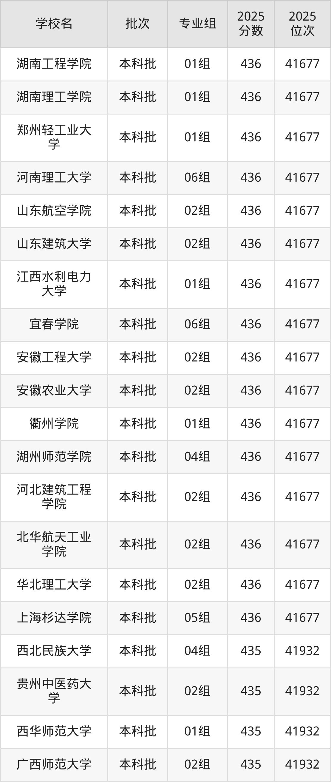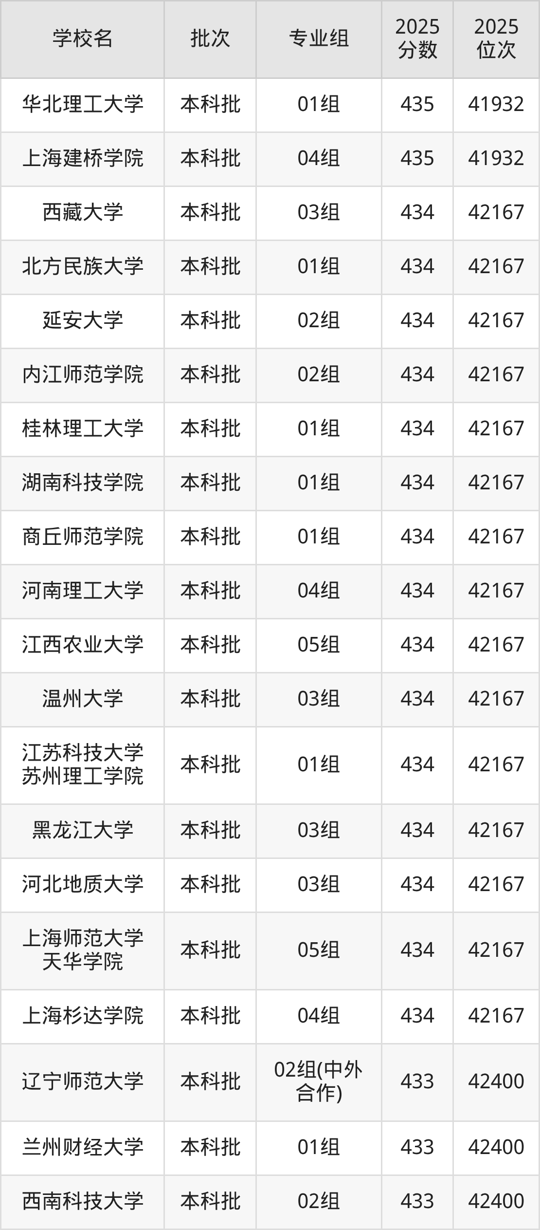 这些都是2026年高考41933名~42167名考生可以报考的大学,更多学校名单如下表所示: