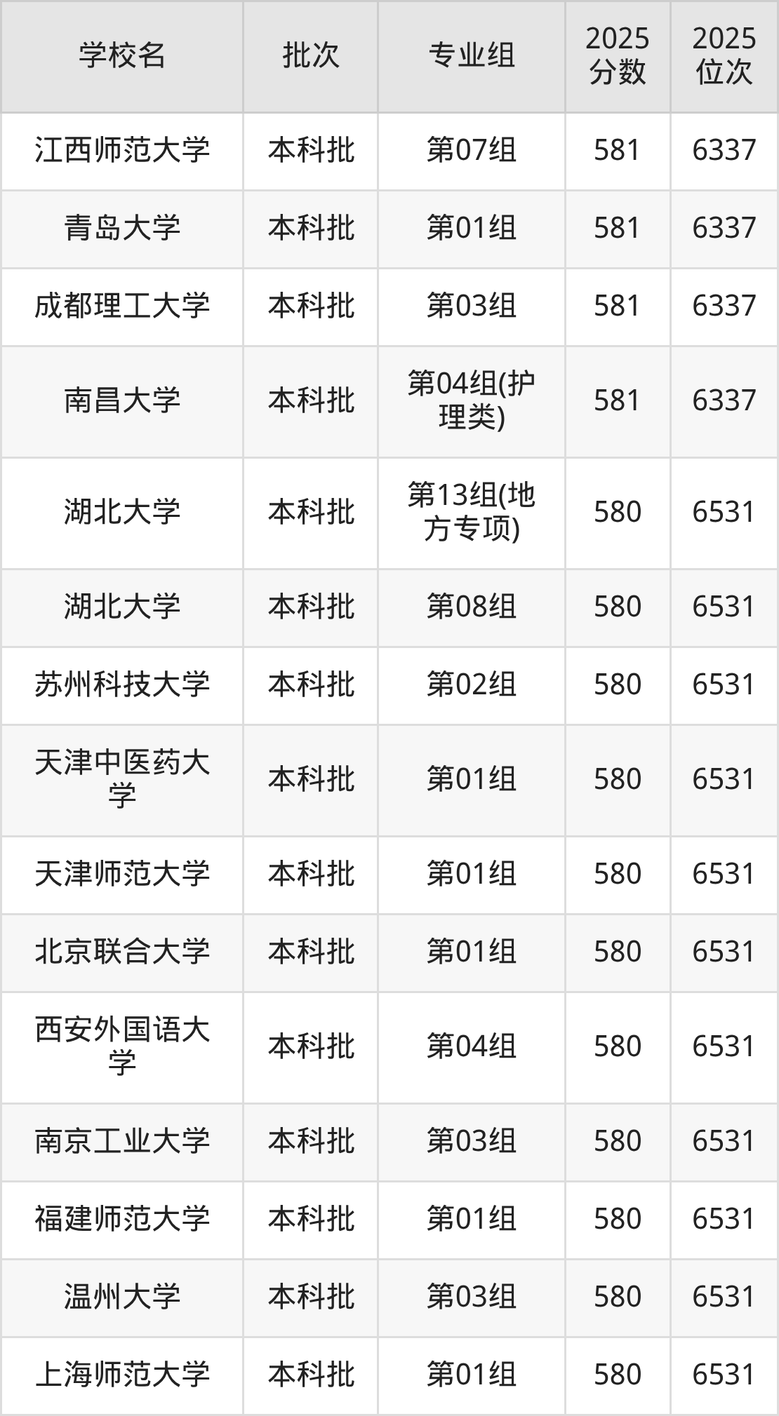 这些都是2026年高考历史类5938名~6142名考生可以报考的大学,更多学校名单如下表所示: