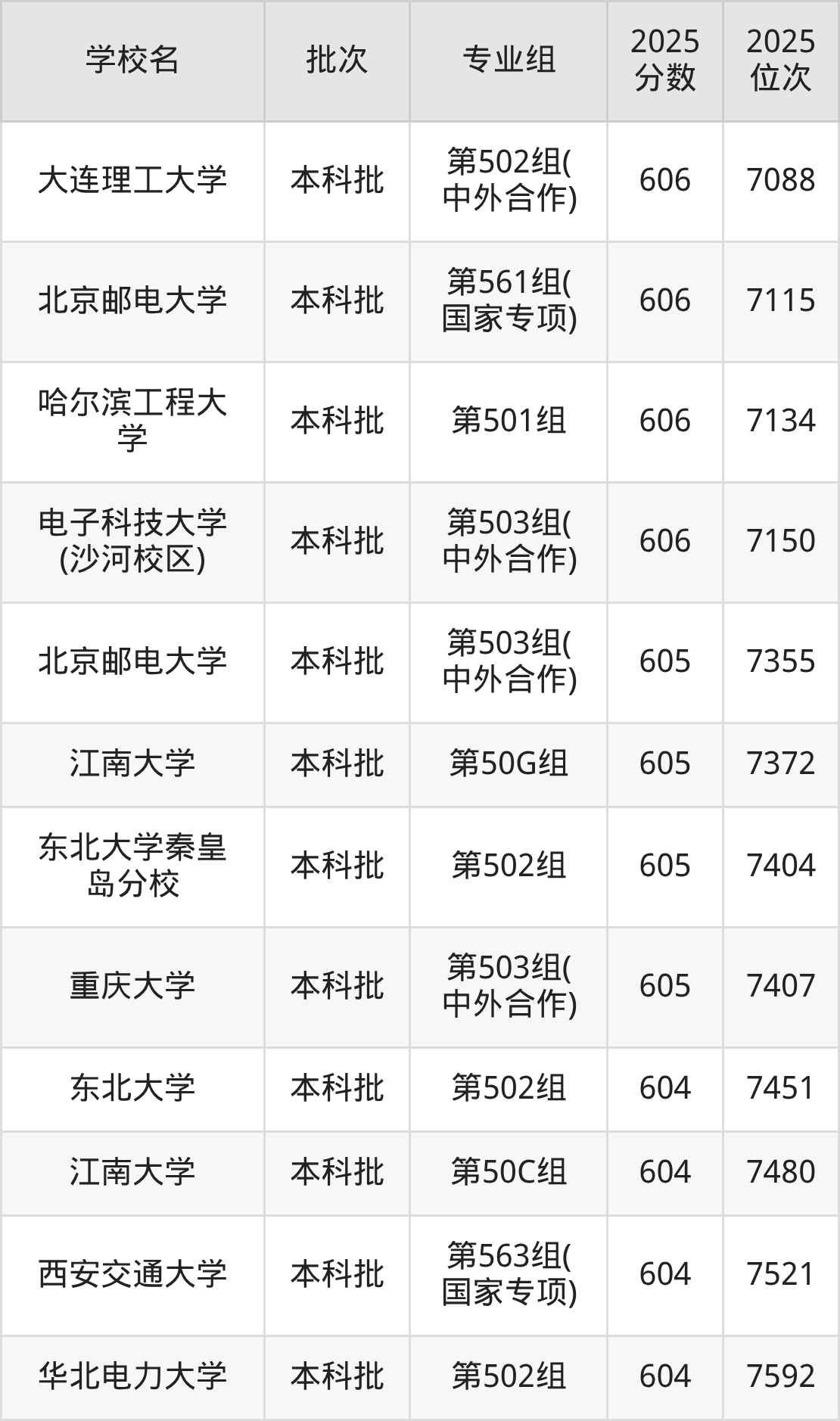 2025年江西高考物理类606分(6876名~7158名)能上的大学有北京科技大学第502组、北京科技大学第503组、北京邮电大学第561组(国家专项)、大连理工大学第502组(中外合作)等。