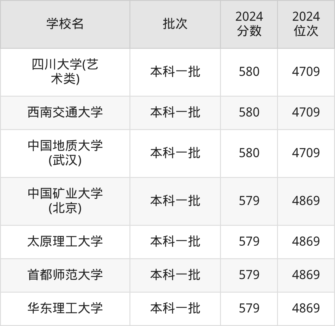 这些都是2025年高考文科4357名~4526名考生可以报考的大学,更多学校名单如下表所示: