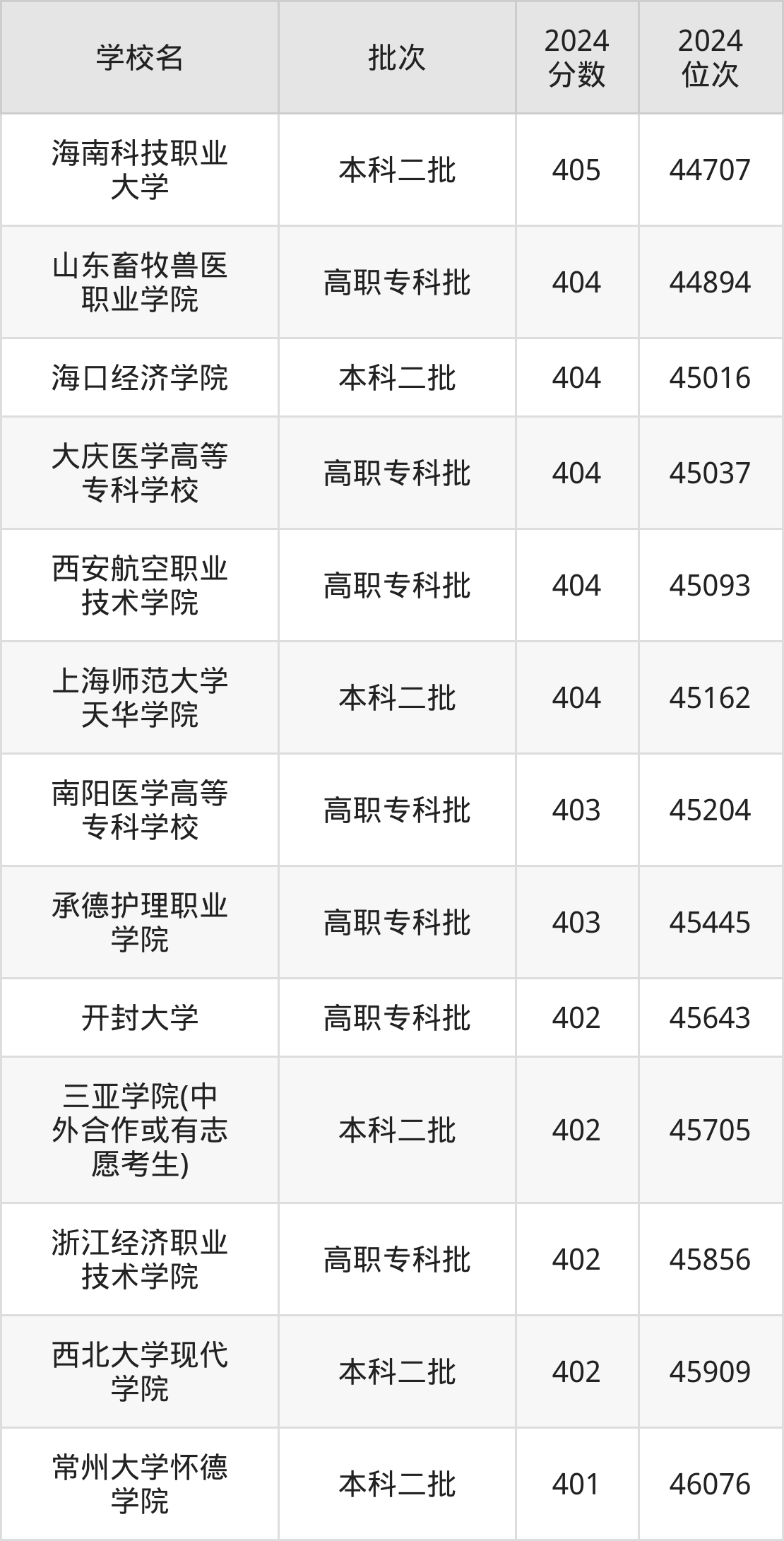 2024年陕西高考文科403分(45180名~45613名)能上的大学有承德护理职业学院、南阳医学高等专科学校。