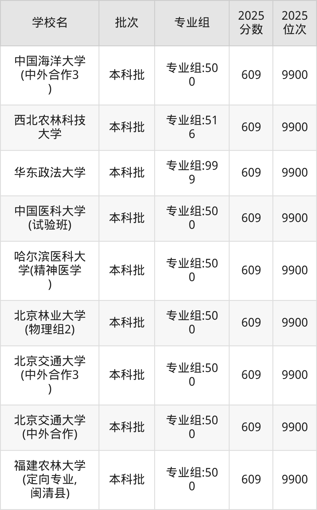 这些都是2026年高考物理类9315名~9599名考生可以报考的大学,更多学校名单如下表所示: