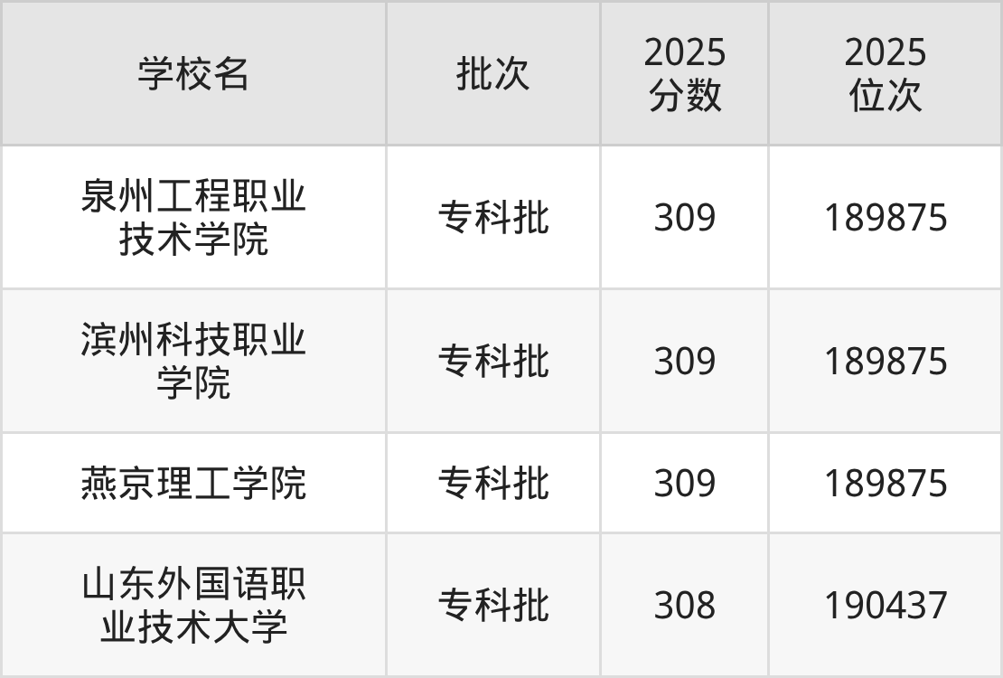 2025年河北高考历史类308分(189876名~190437名)能上的大学有山东外国语职业技术大学。