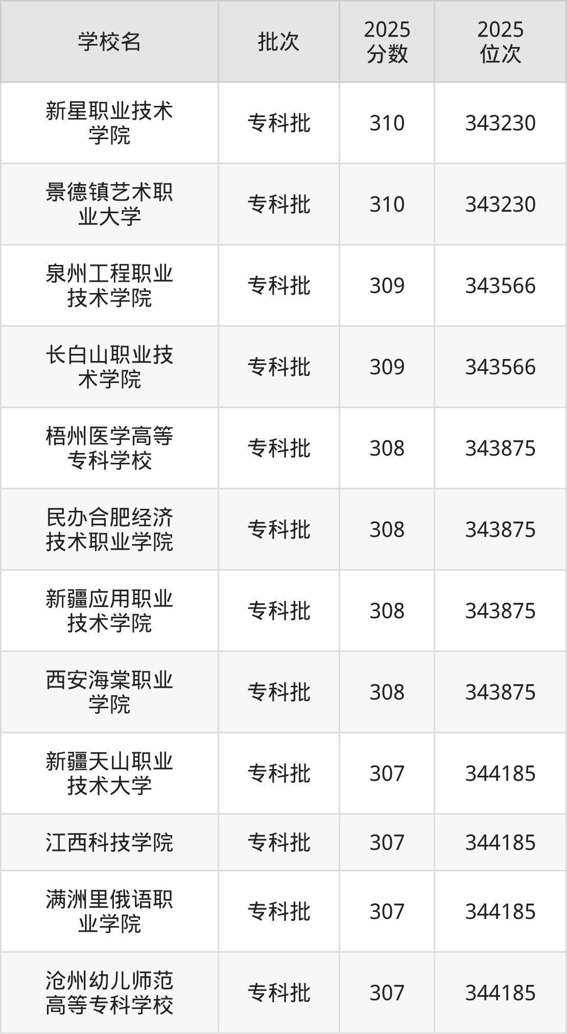 2025年河北高考物理类308分(343567名~343875名)能上的大学有西安海棠职业学院、民办合肥经济技术职业学院、新疆应用职业技术学院、梧州医学高等专科学校。