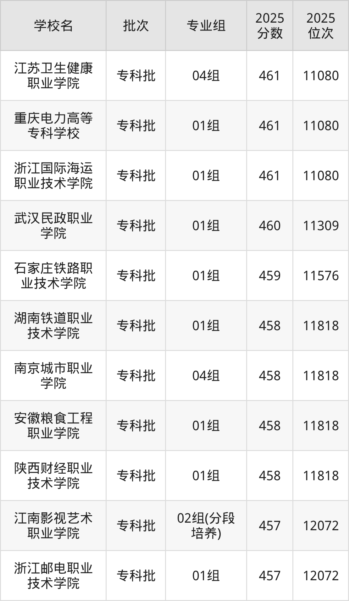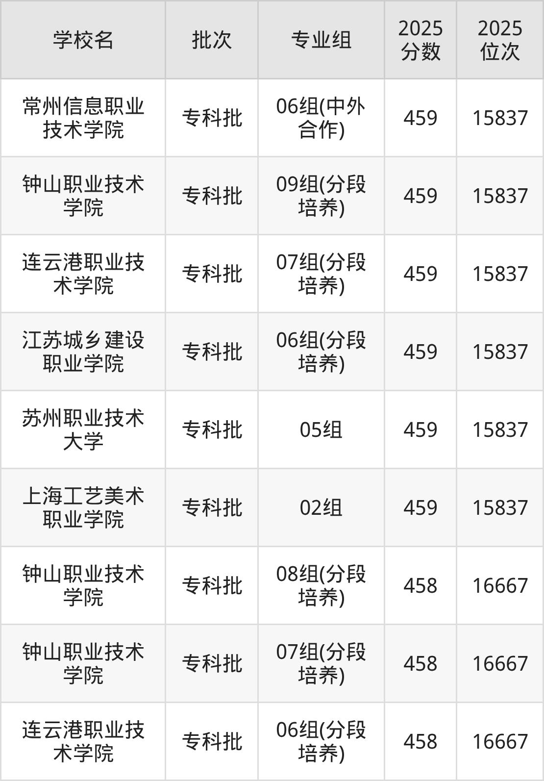 2025年江苏高考物理类458分(15838名~16667名)能上的大学有连云港职业技术学院06组(分段培养)、钟山职业技术学院07组(分段培养)、钟山职业技术学院08组(分段培养)。