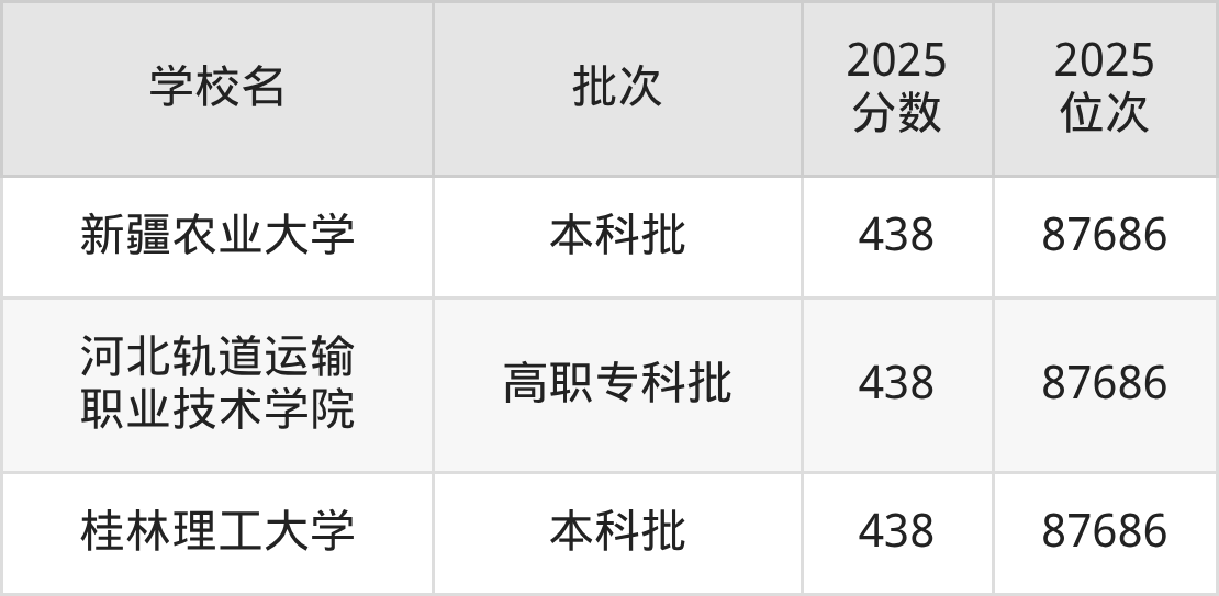 这些都是2026年高考物理类86753名~87231名考生可以报考的大学,更多学校名单如下表所示: