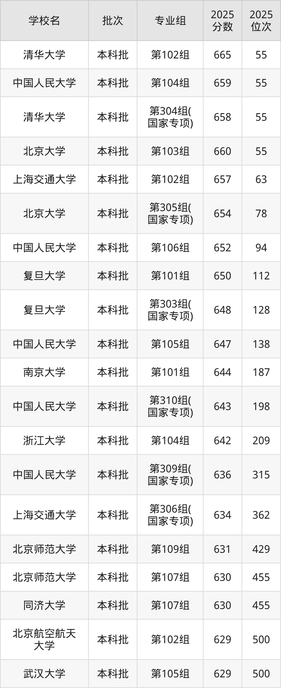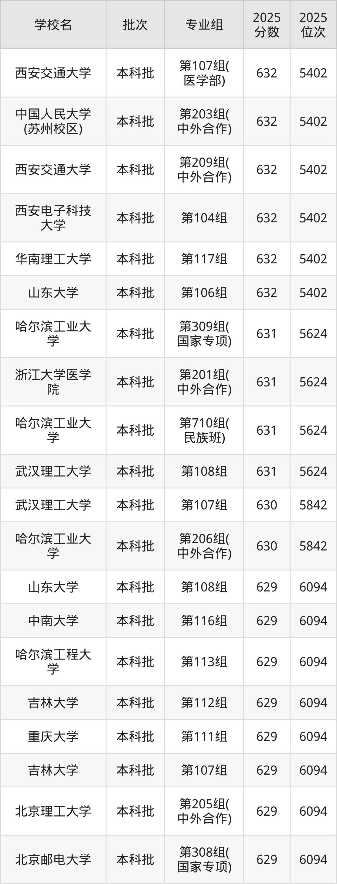 湖南高考629分:历史类排名500位、物理类排名6094位。该分数位次对应能上的大学历史类有北京航空航天大学第102组、吉林大学第105组;物理类有中国人民大学第311组(国家专项)、北京邮电大学第308组(国家专项),更多名单如下文所示,2026届考生可参考。