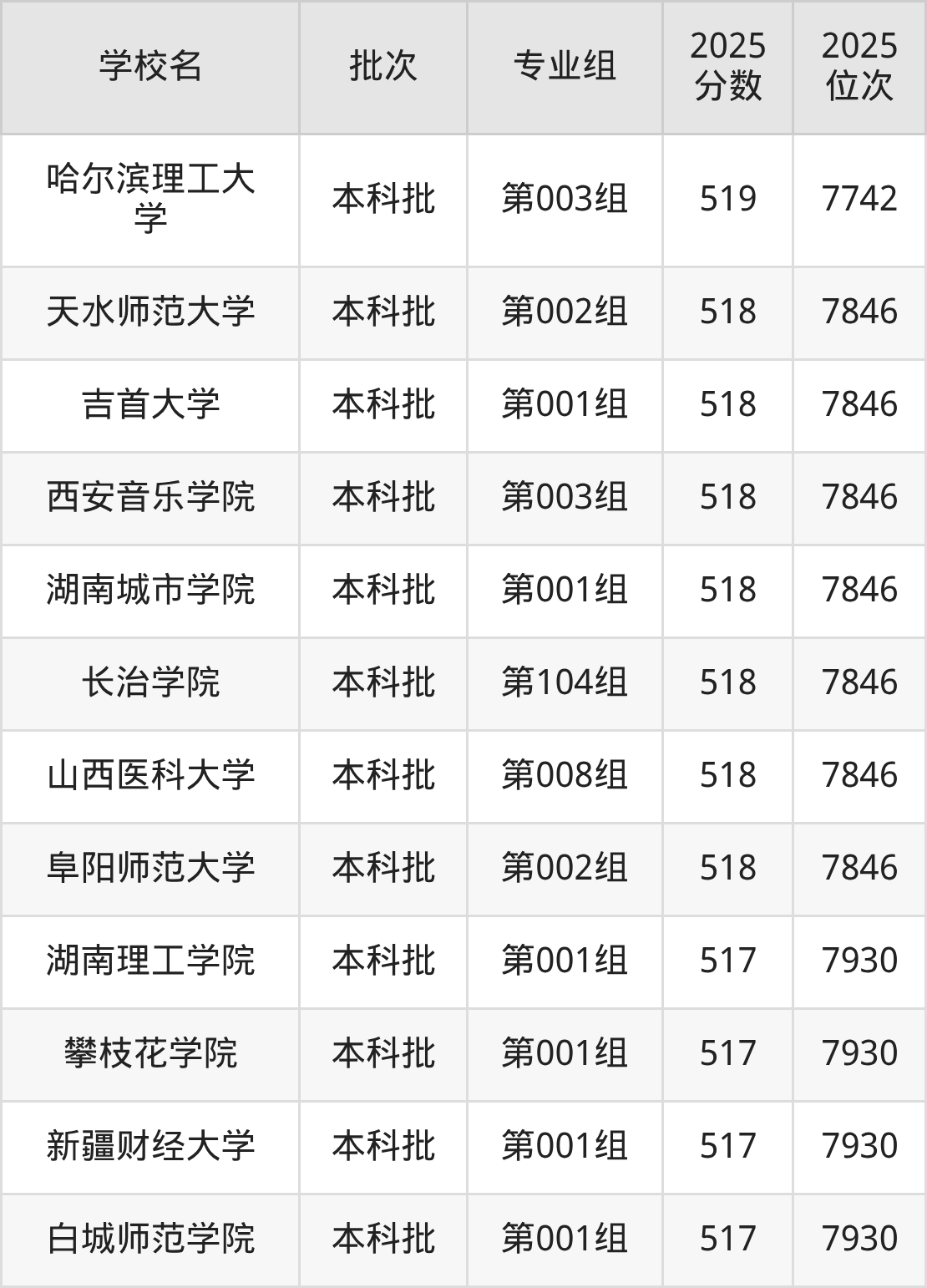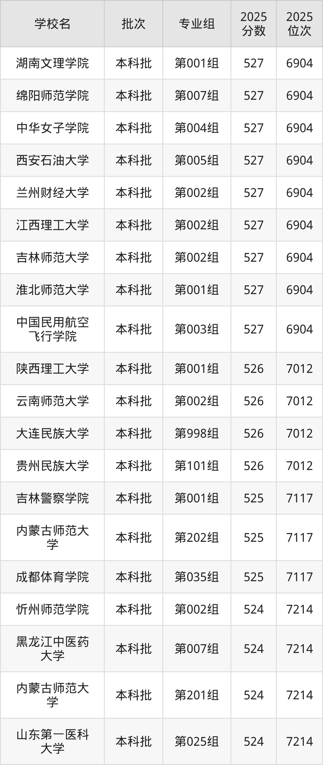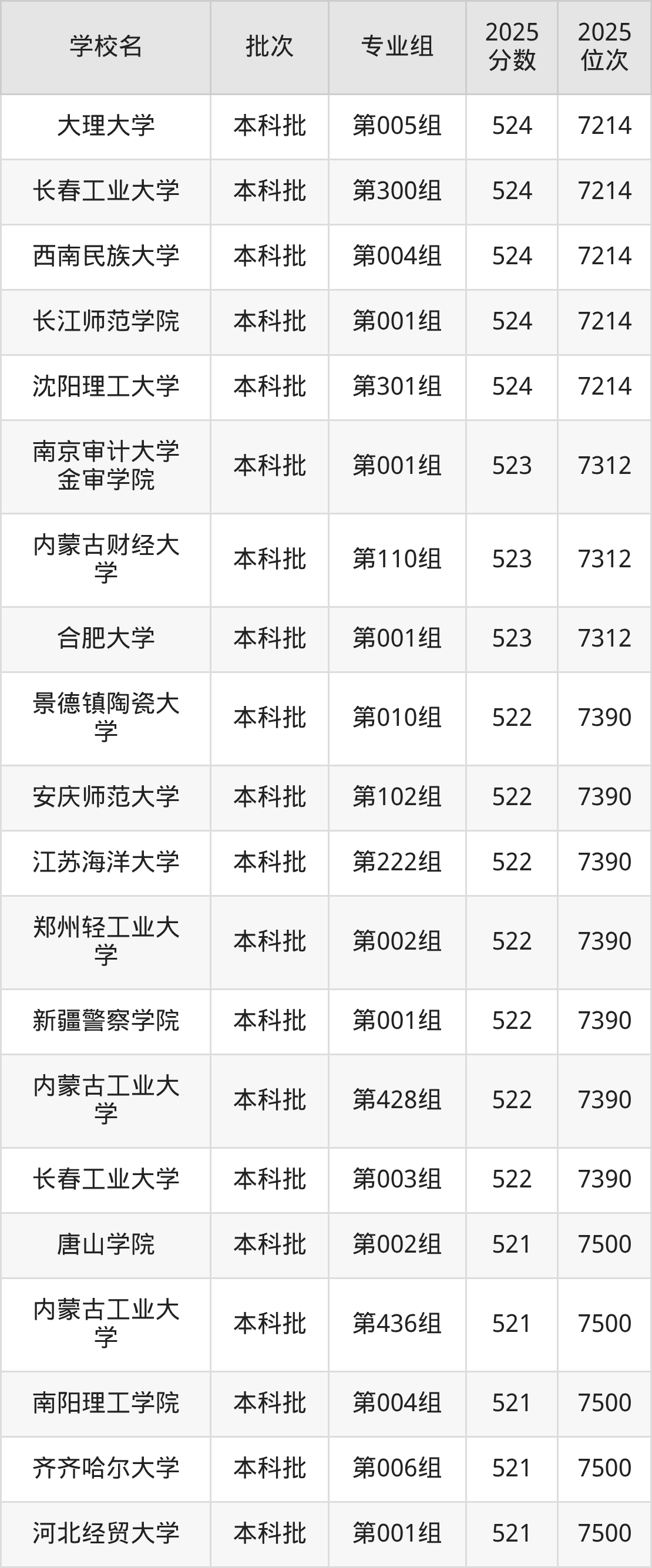 这些都是2026年高考历史类7391名~7500名考生可以报考的大学,更多学校名单如下表所示:
