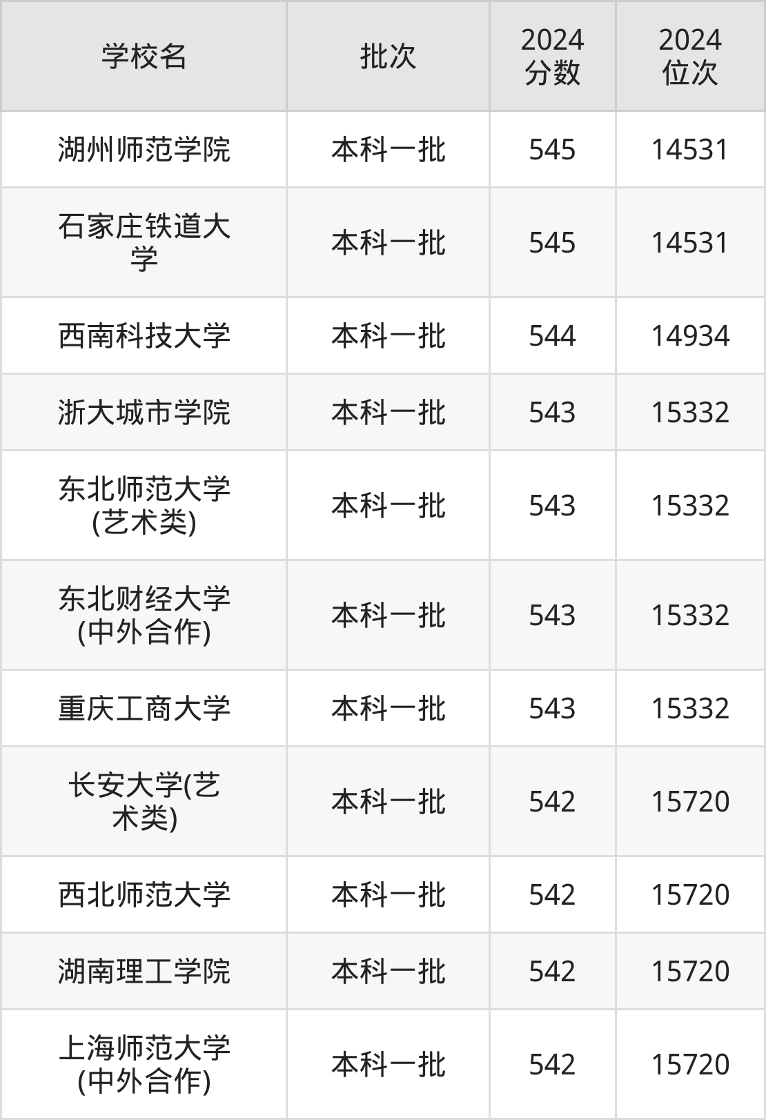 2024年河南高考文科543分(14935名~15332名)能上的大学有重庆工商大学、浙大城市学院、东北财经大学(中外合作)、东北师范大学(艺术类)。