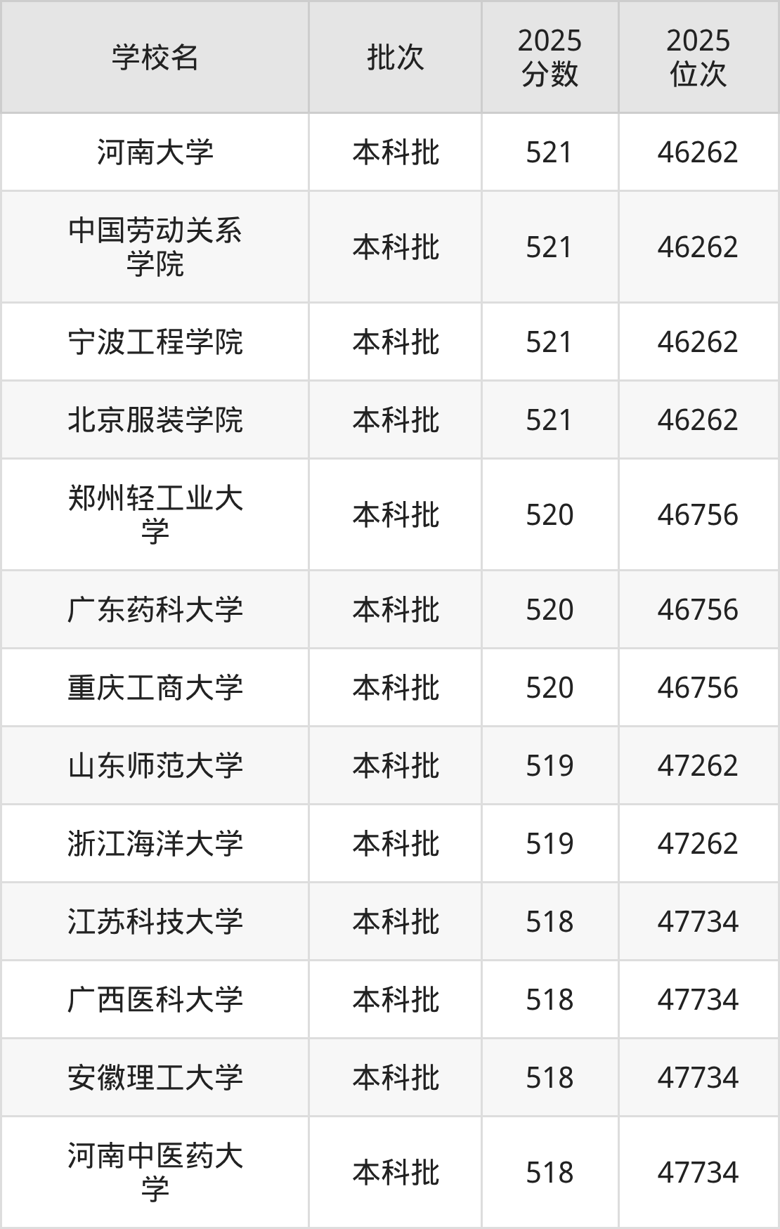 2025年辽宁高考物理类519分(46757名~47262名)能上的大学有浙江海洋大学、山东师范大学。