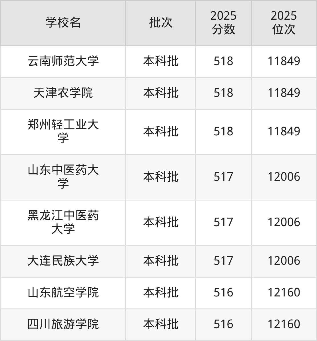 这些都是2026年高考历史类11527名~11683名考生可以报考的大学,更多学校名单如下表所示:
