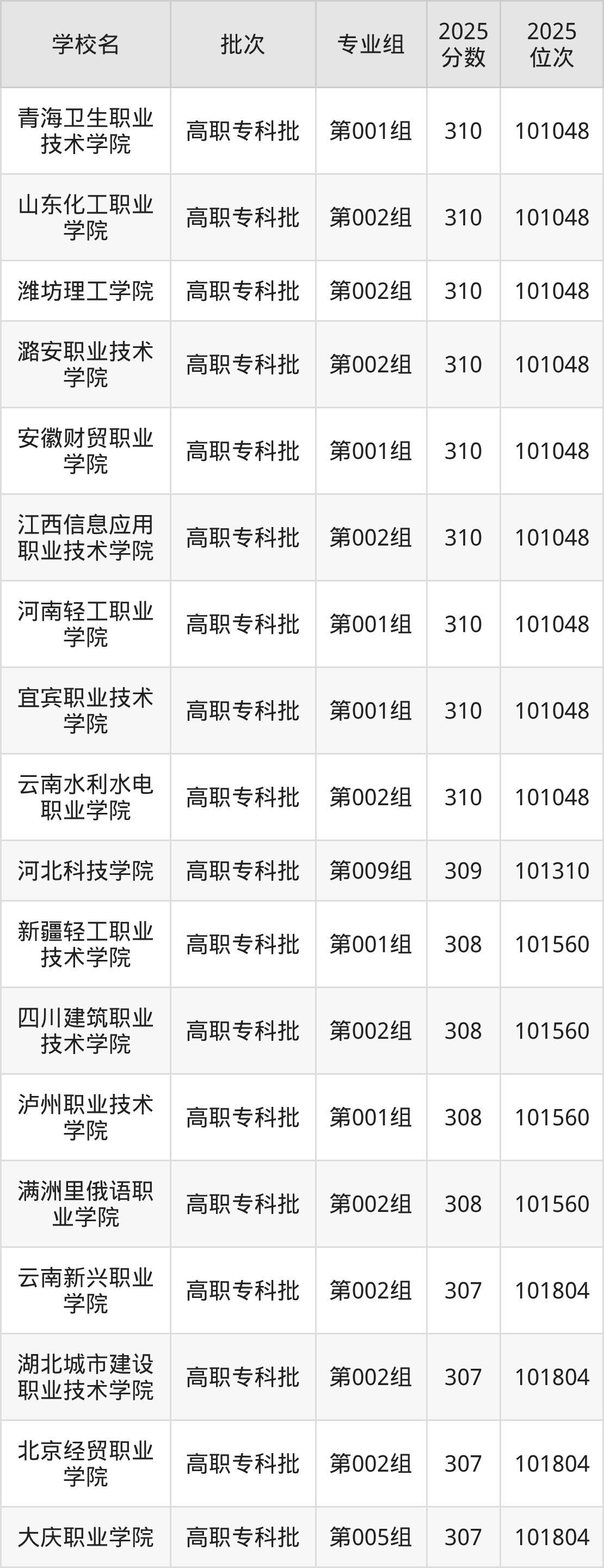 2025年黑龙江高考物理类308分(101311名~101560名)能上的大学有满洲里俄语职业学院第002组、四川建筑职业技术学院第002组、泸州职业技术学院第001组、新疆轻工职业技术学院第001组。