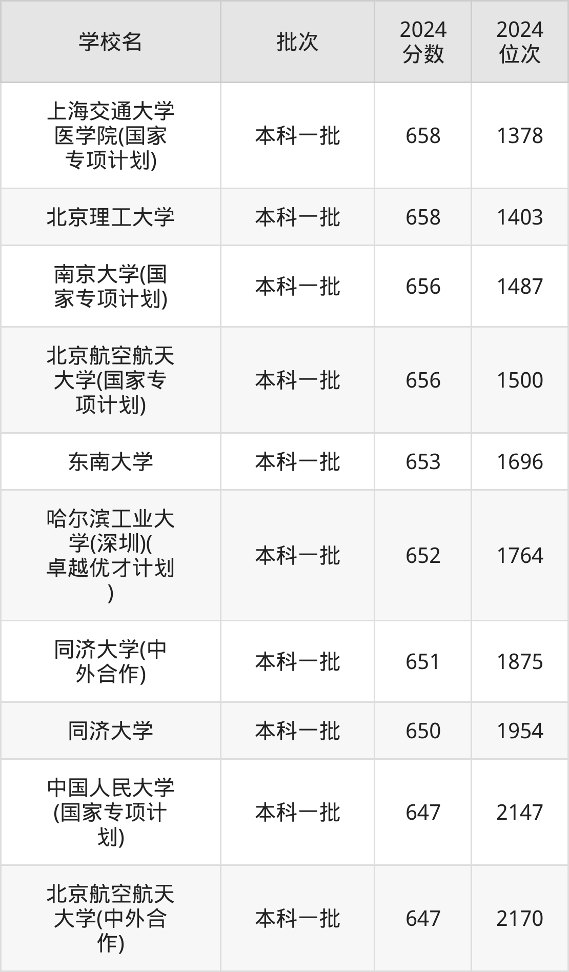 陕西高考654分:理科排名1674位。该分数位次对应能上的大学理科有东南大学、哈尔滨工业大学(深圳)(卓越优才计划),更多名单如下文所示,2025届考生可参考。