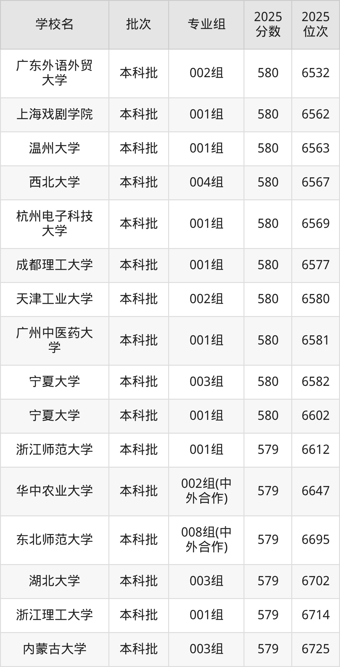 这些都是2026年高考历史类6081名~6237名考生可以报考的大学,更多学校名单如下表所示: