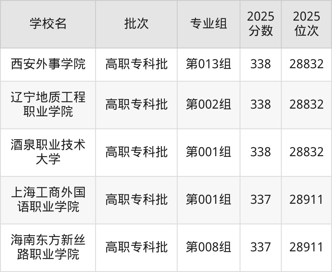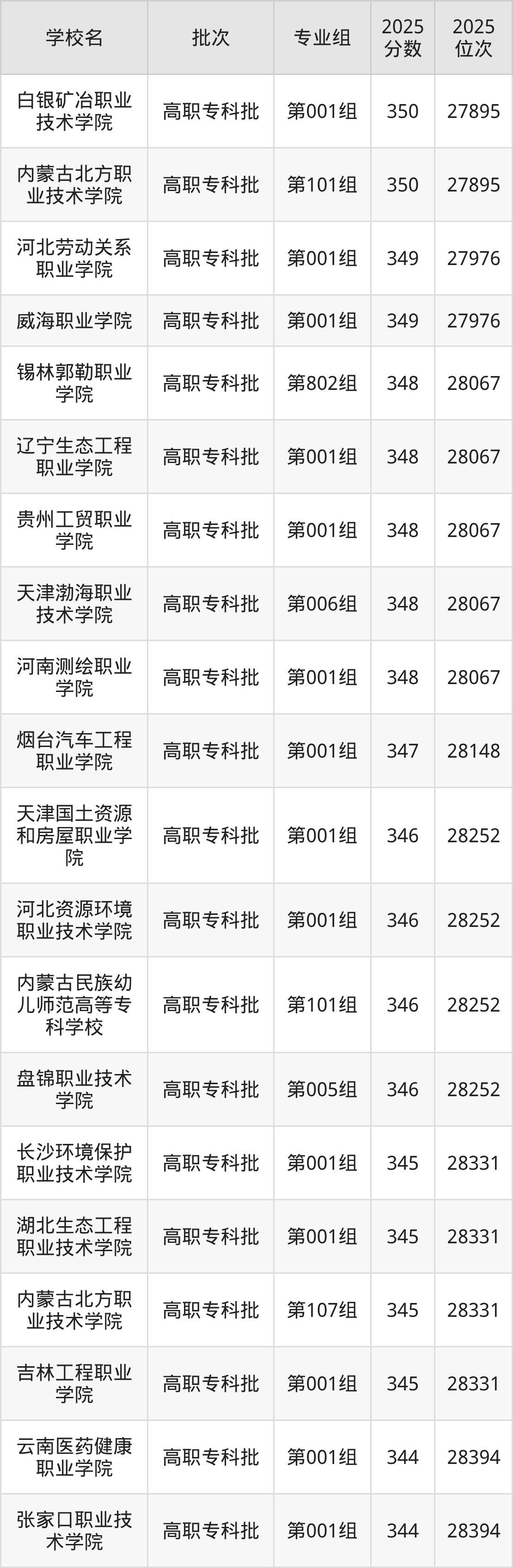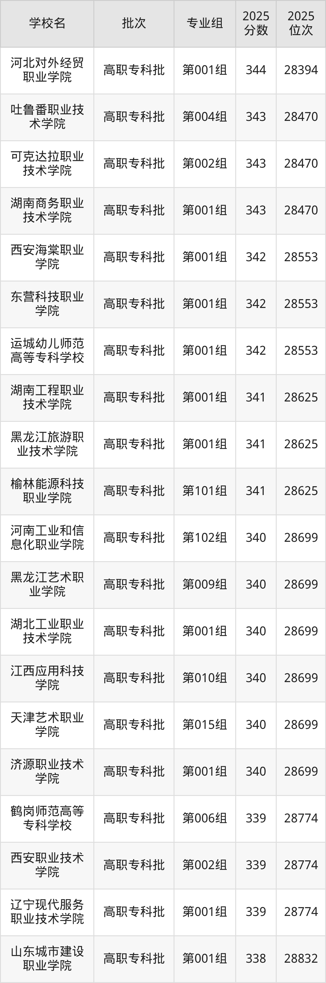 2025年内蒙古高考历史类343分(28395名~28470名)能上的大学有吐鲁番职业技术学院第004组、可克达拉职业技术学院第002组、湖南商务职业技术学院第001组。