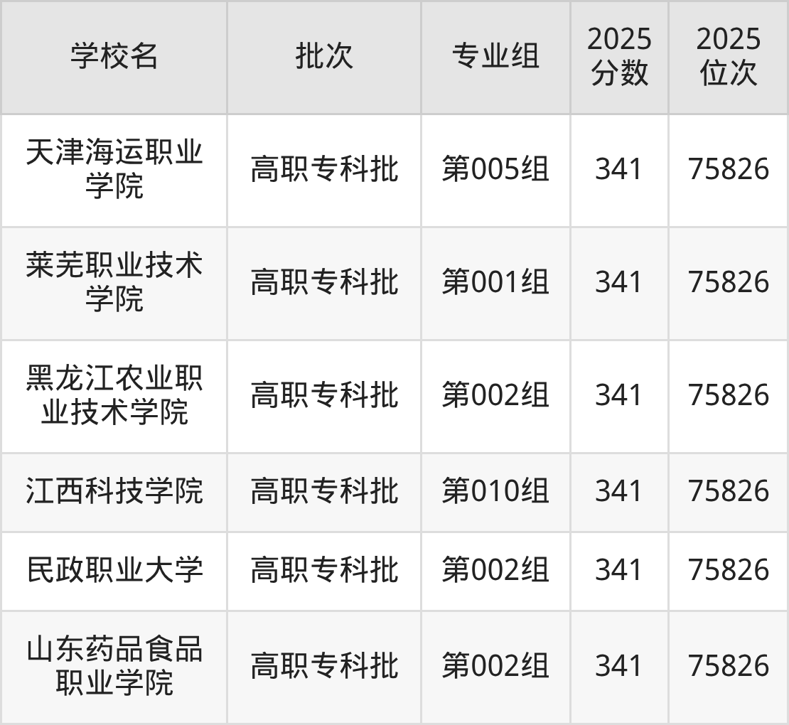 2025年内蒙古高考物理类343分(75281名~75446名)能上的大学有泉州海洋职业学院第056组、铜仁职业技术大学第001组、黑龙江农垦职业学院第002组、甘肃交通职业技术学院第222组等。