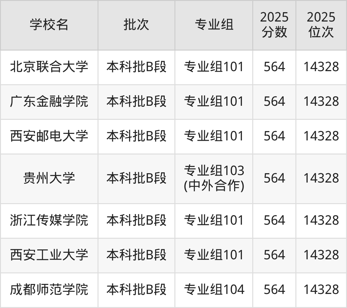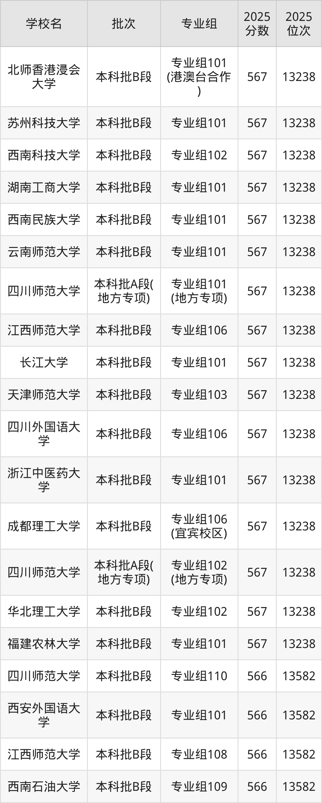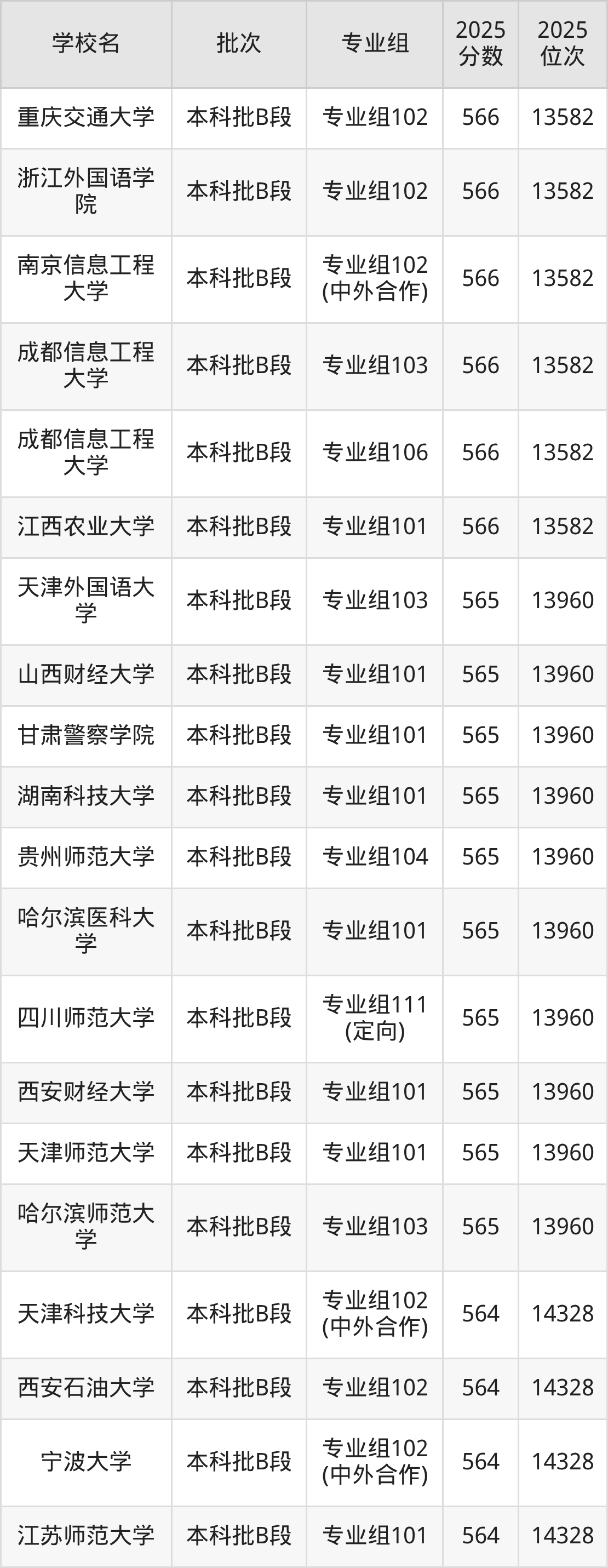 这些都是2026年高考历史类13583名~13960名考生可以报考的大学,更多学校名单如下表所示: