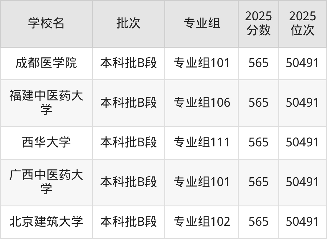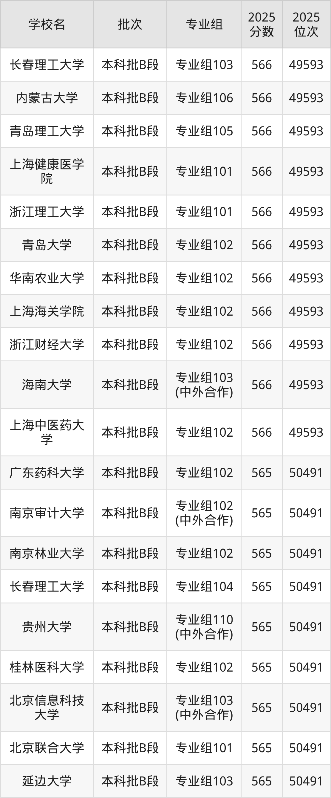 2025年四川高考物理类565分(49594名~50491名)能上的大学有南京林业大学专业组102、南京审计大学专业组102(中外合作)、长春理工大学专业组104、贵州大学专业组110(中外合作)等。
