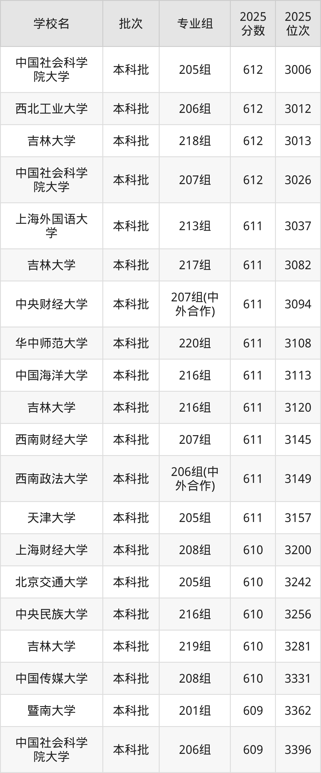 由于高考录取分数线历年波动较大,因此本文以该分数对应的位次排名为大家整理能上的大学名单。