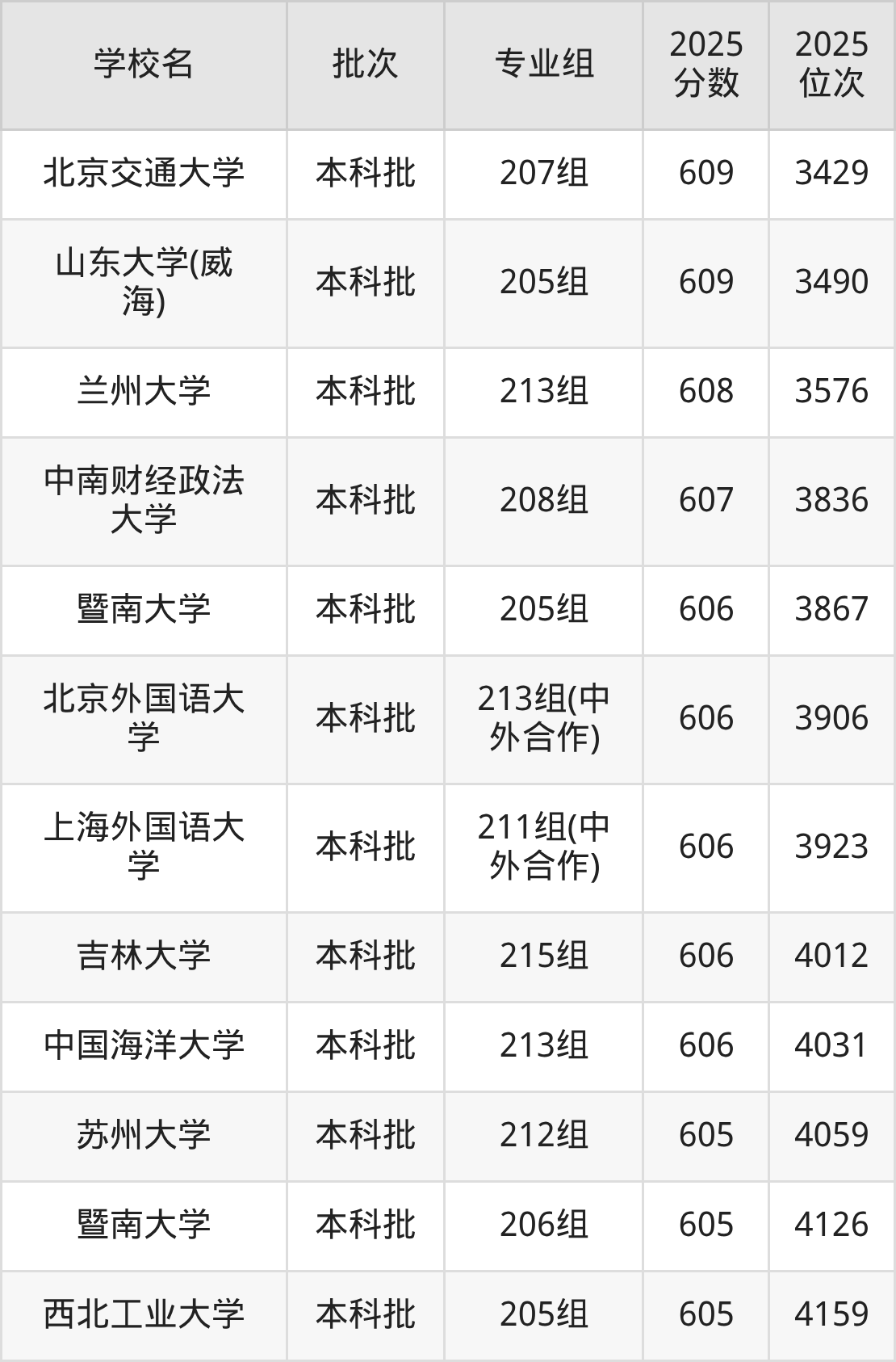 2025年广东高考历史类608分(3506名~3676名)能上的大学有兰州大学213组。