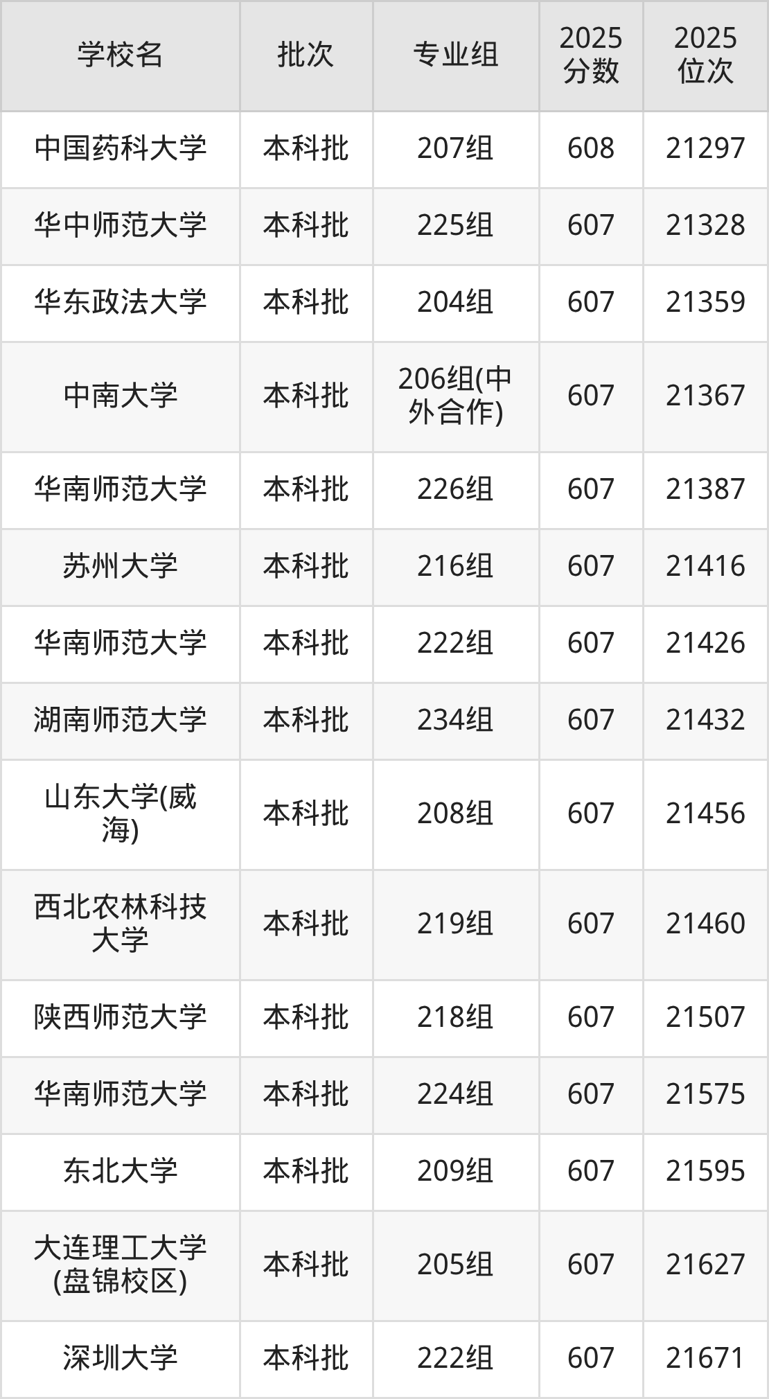 这些都是2026年高考物理类20683名~21322名考生可以报考的大学,更多学校名单如下表所示: