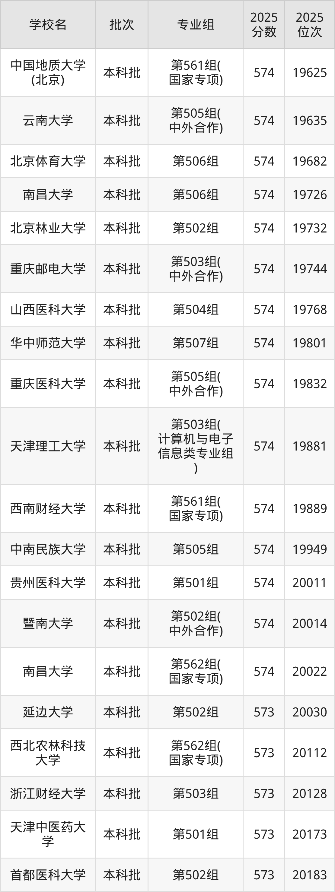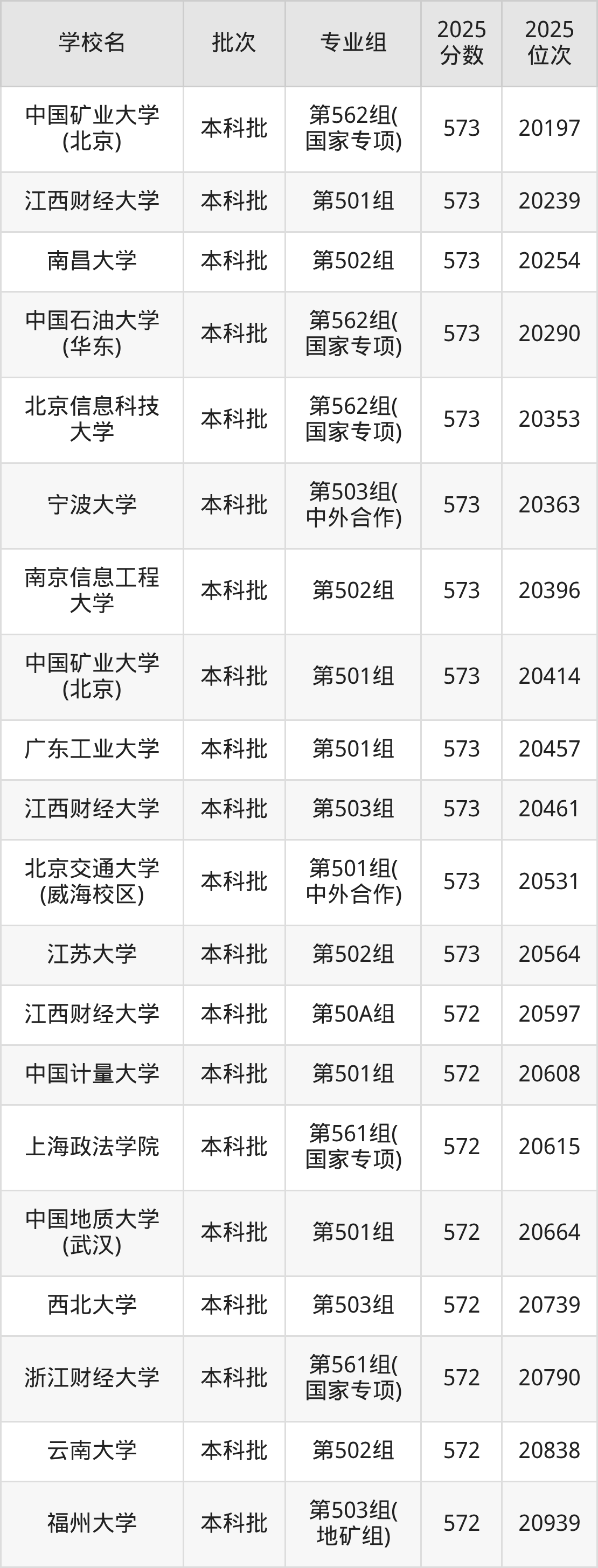 2025年江西高考物理类573分(20027名~20570名)能上的大学有中国矿业大学(北京)第501组、中国矿业大学(北京)第562组(国家专项)、首都医科大学第502组、延边大学第502组等。