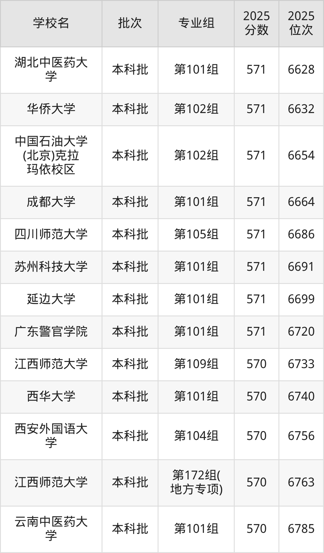 这些都是2026年高考物理类20027名~20570名考生可以报考的大学,更多学校名单如下表所示: