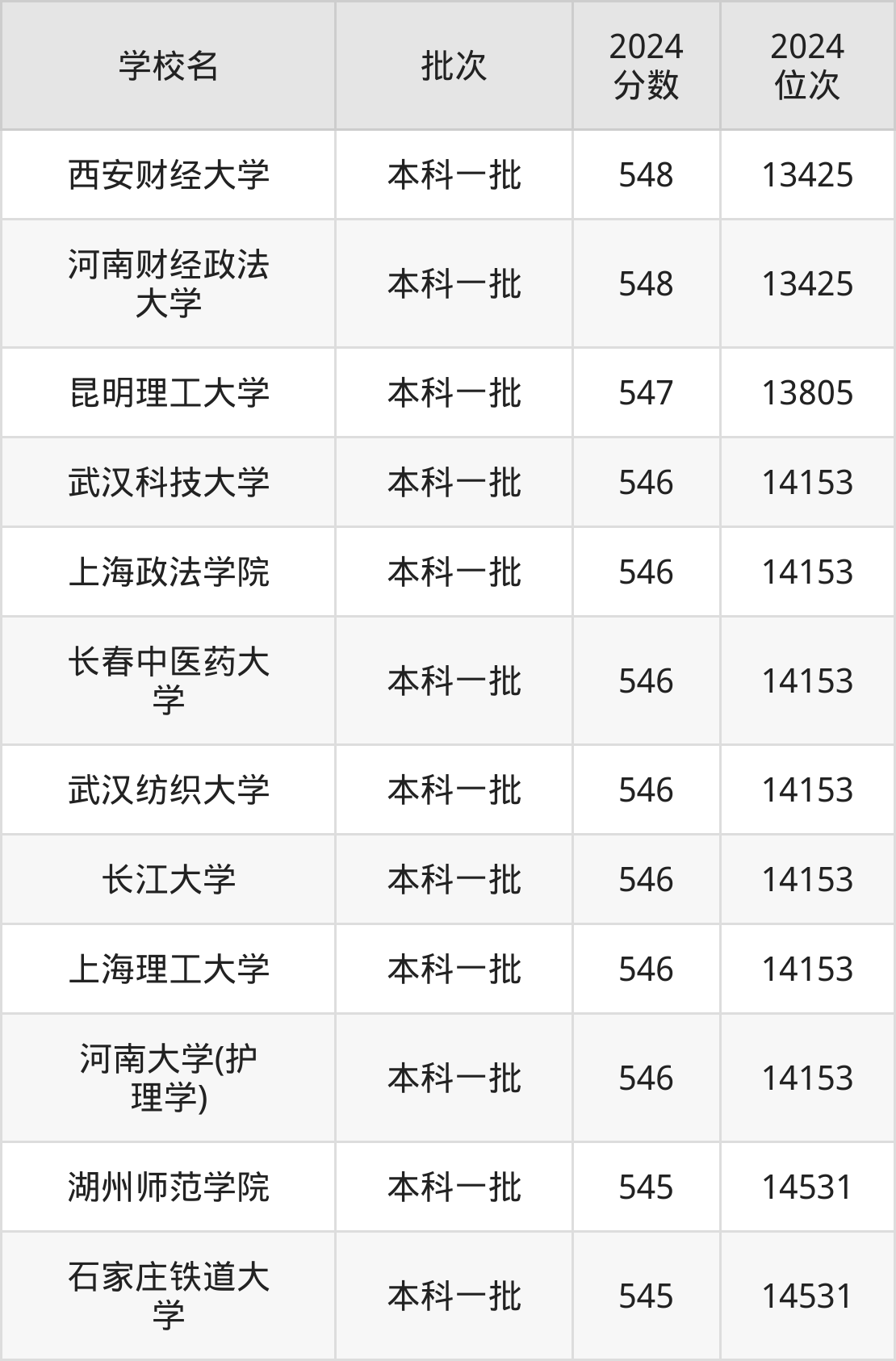 2024年河南高考文科546分(13806名~14153名)能上的大学有上海理工大学、武汉科技大学、上海政法学院、长江大学等。