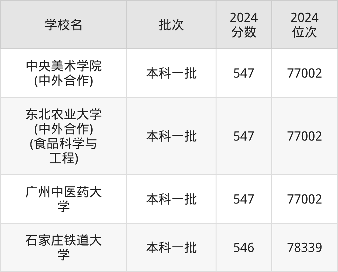2024年河南高考理科546分(77003名~78339名)能上的大学有石家庄铁道大学。
