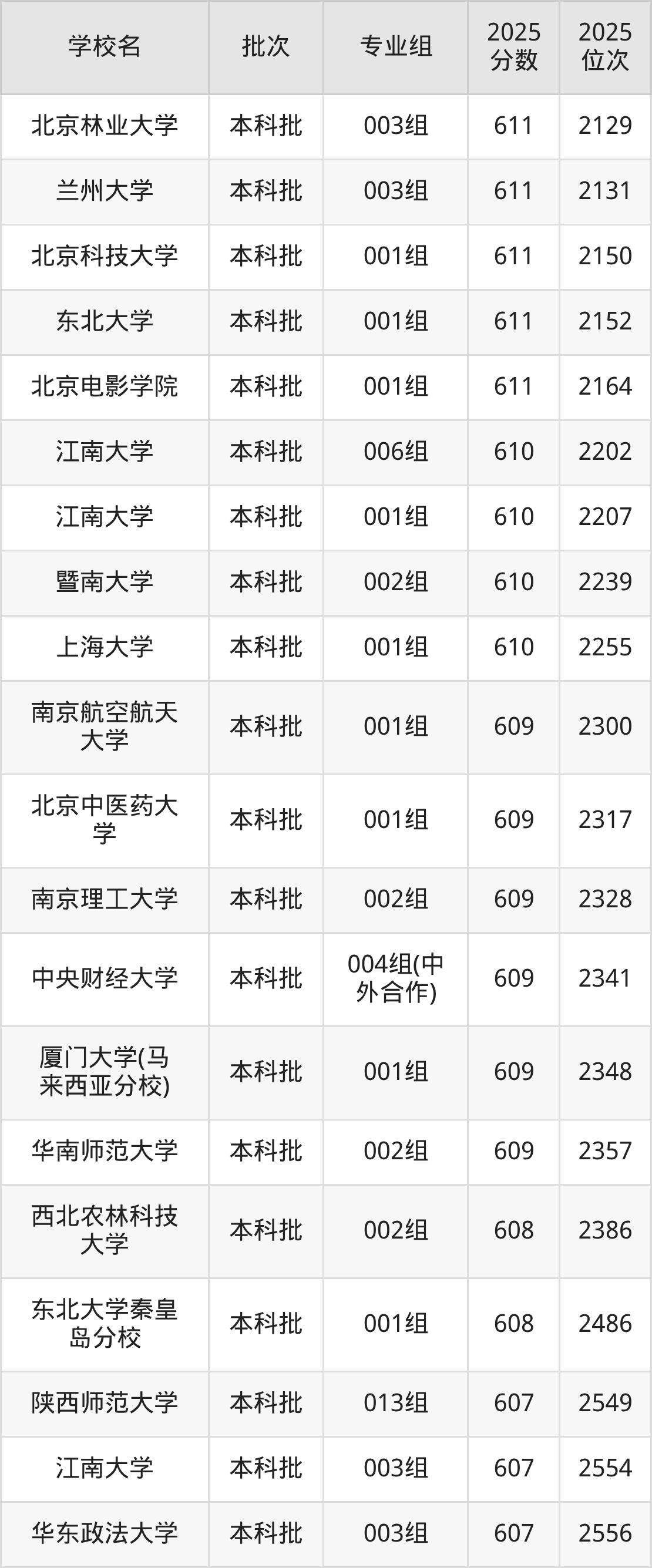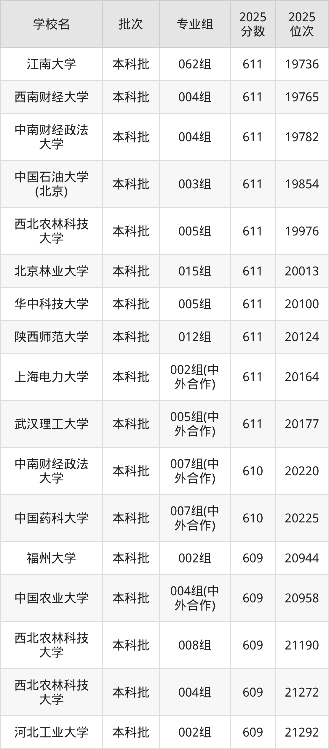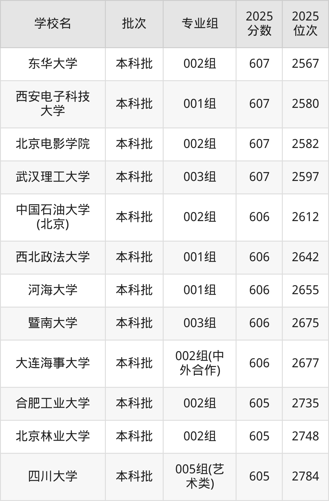 这些都是2026年高考物理类20185名~20793名考生可以报考的大学,更多学校名单如下表所示: