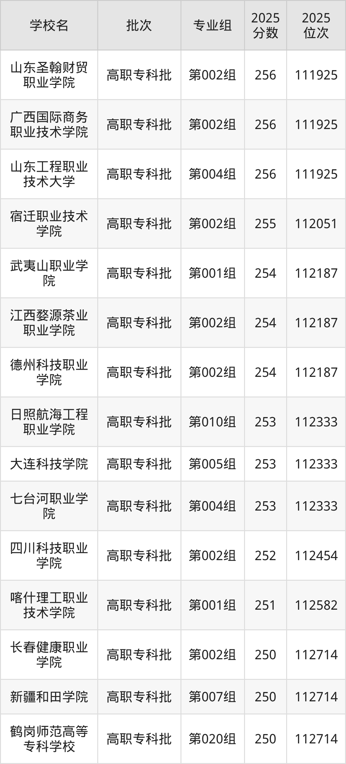 另外录取位次低于该区间(较稳妥)的有喀什理工职业技术学院第001组(112582名)、鹤岗师范高等专科学校第020组(112714名)等;录取位次高于该区间(可冲)的有大连科技学院第005组(112333名)、七台河职业学院第004组(112333名)等。