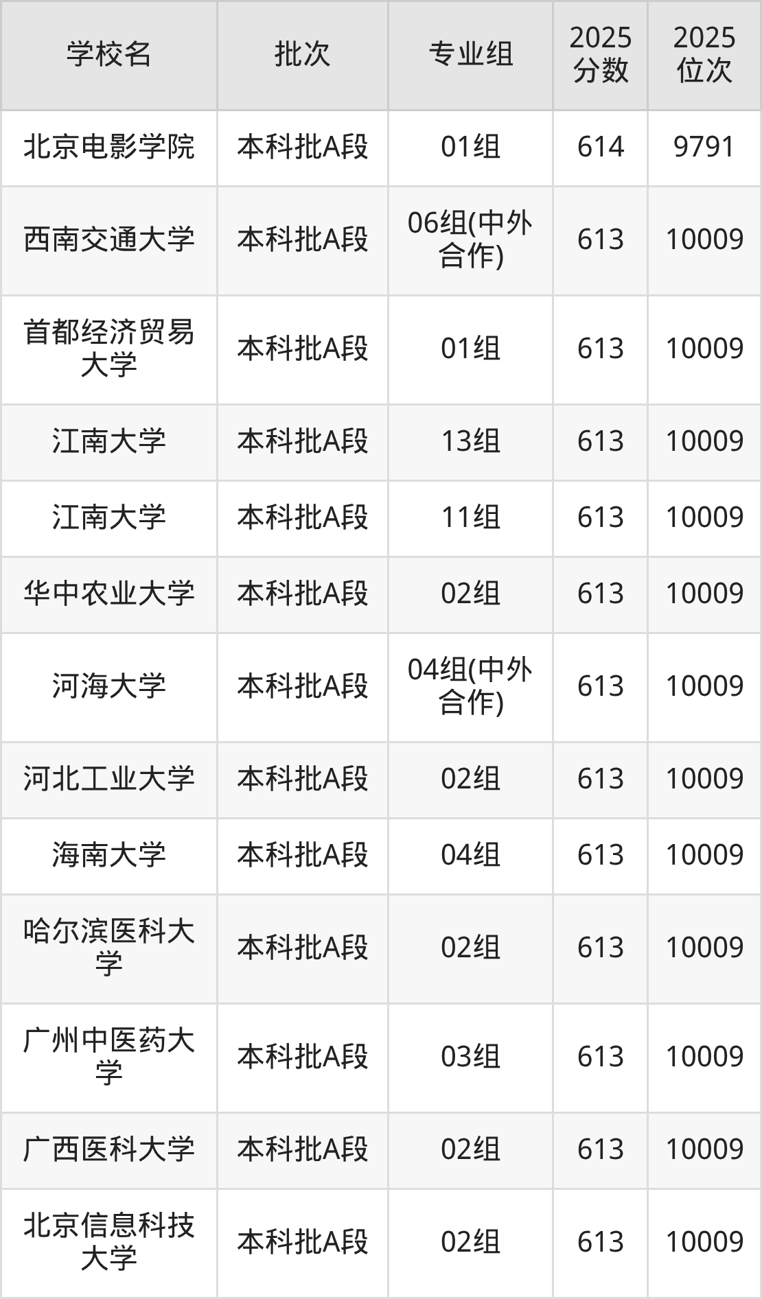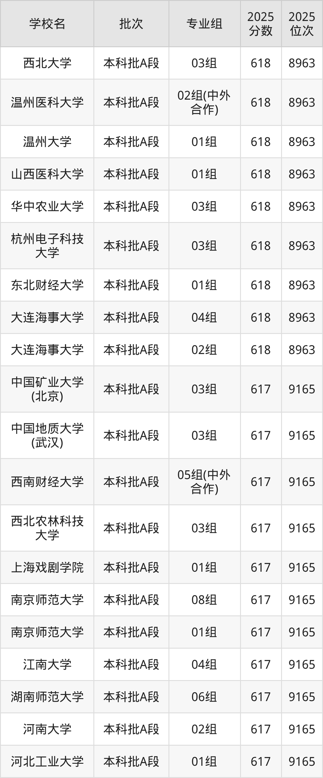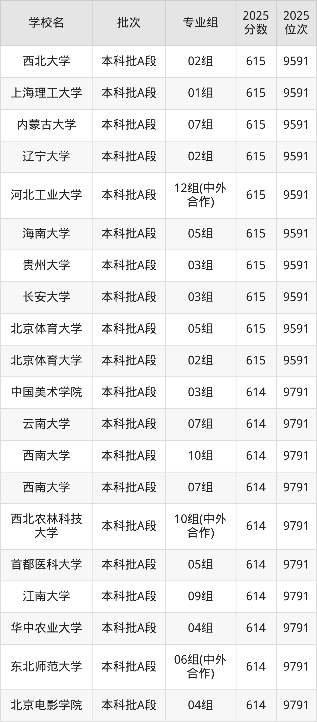 这些都是2026年高考9380名~9591名考生可以报考的大学,更多学校名单如下表所示: