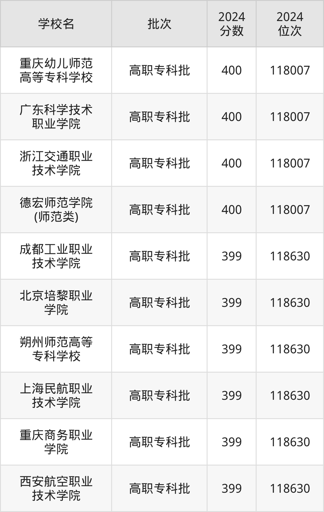 2024年云南高考理科399分(118008名~118630名)能上的大学有上海民航职业技术学院、成都工业职业技术学院、西安航空职业技术学院、朔州师范高等专科学校等。
