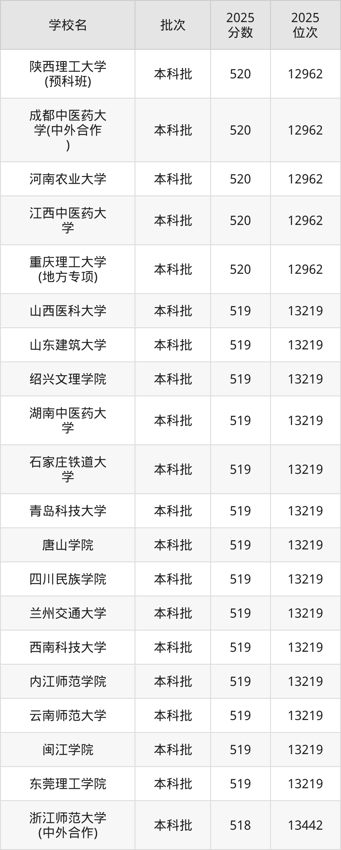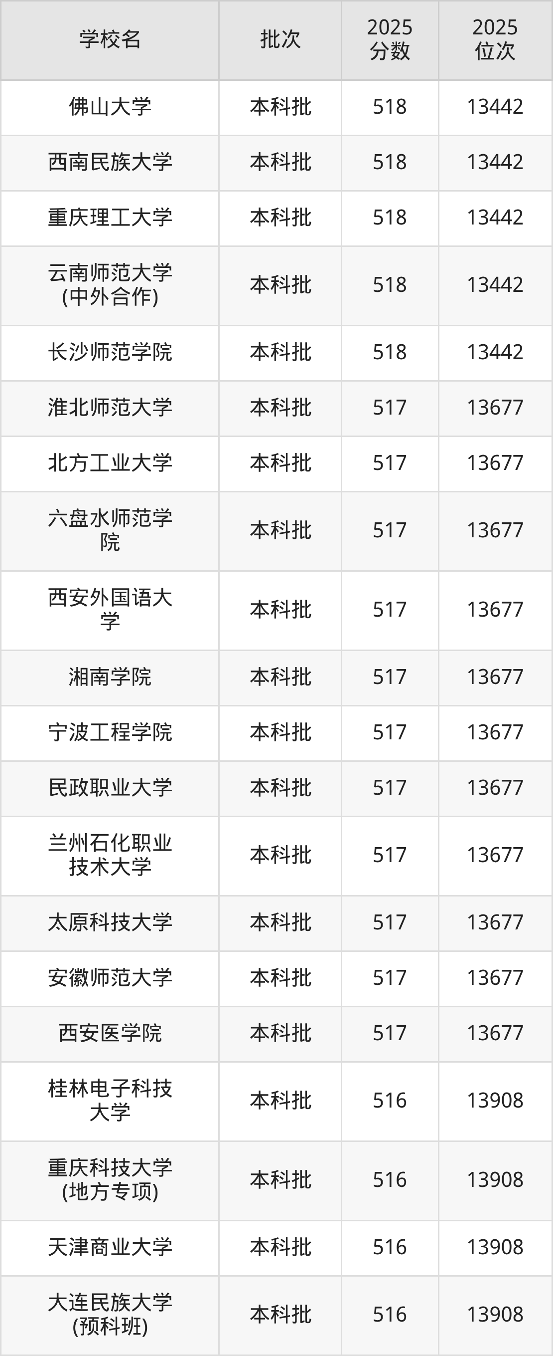 这些都是2026年高考历史类13443名~13677名考生可以报考的大学,更多学校名单如下表所示: