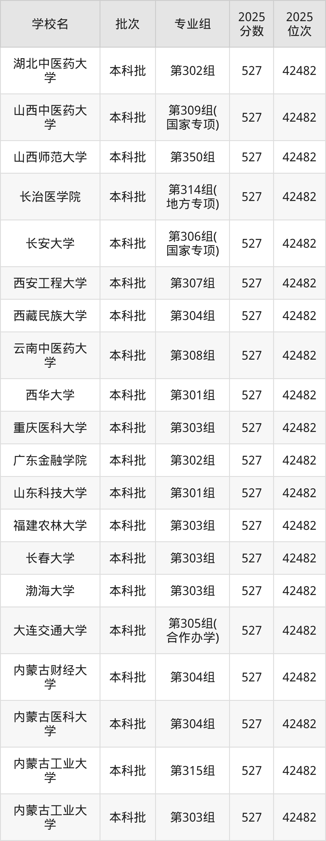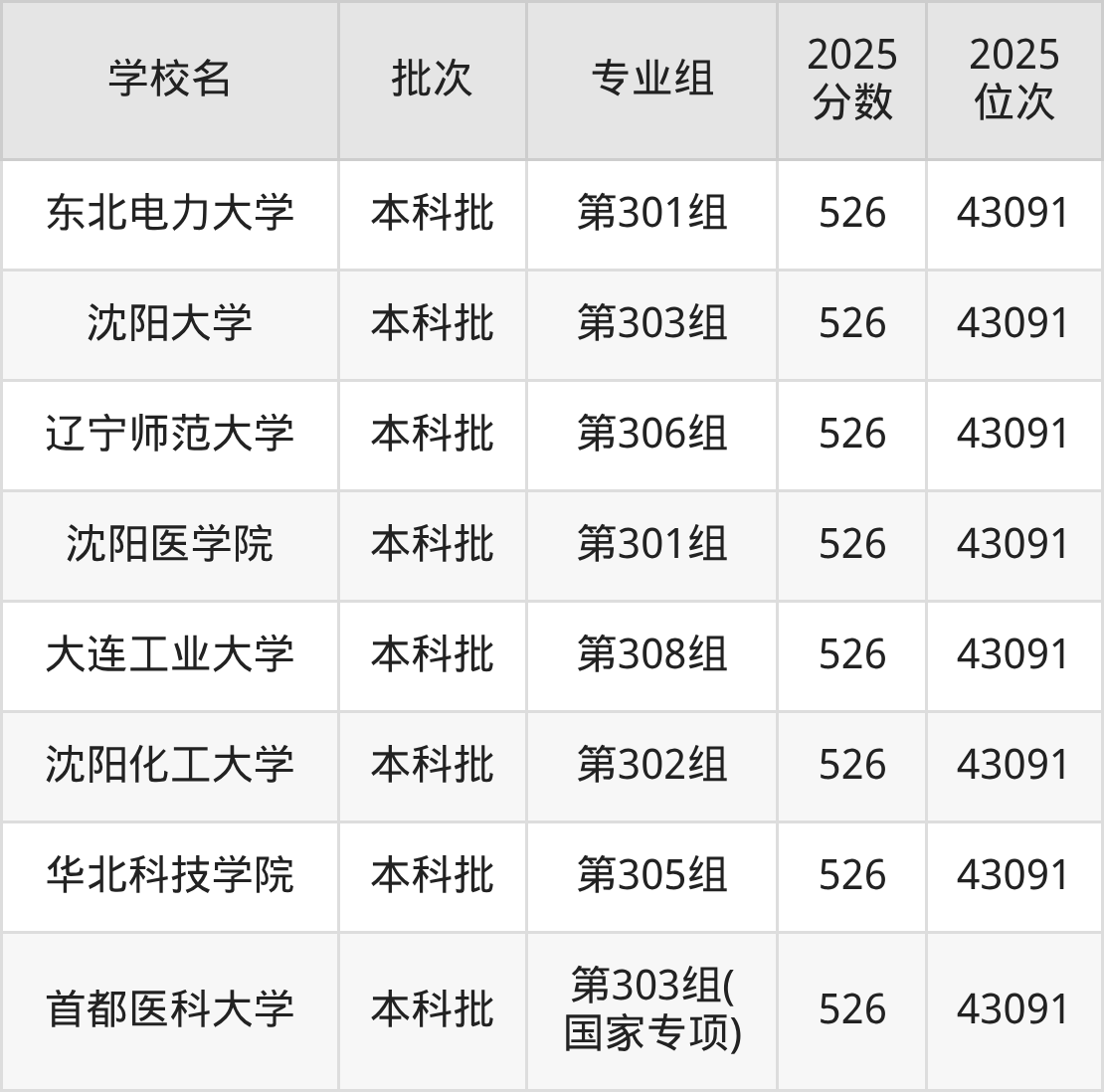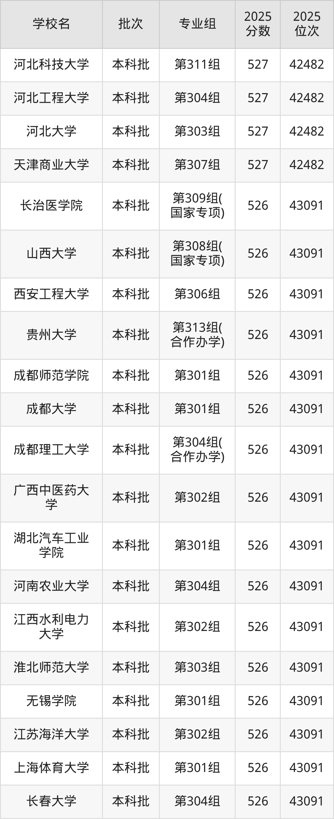 2025年山西高考物理类526分(42483名~43091名)能上的大学有首都医科大学第303组(国家专项)、华北科技学院第305组、沈阳化工大学第302组、大连工业大学第308组等。